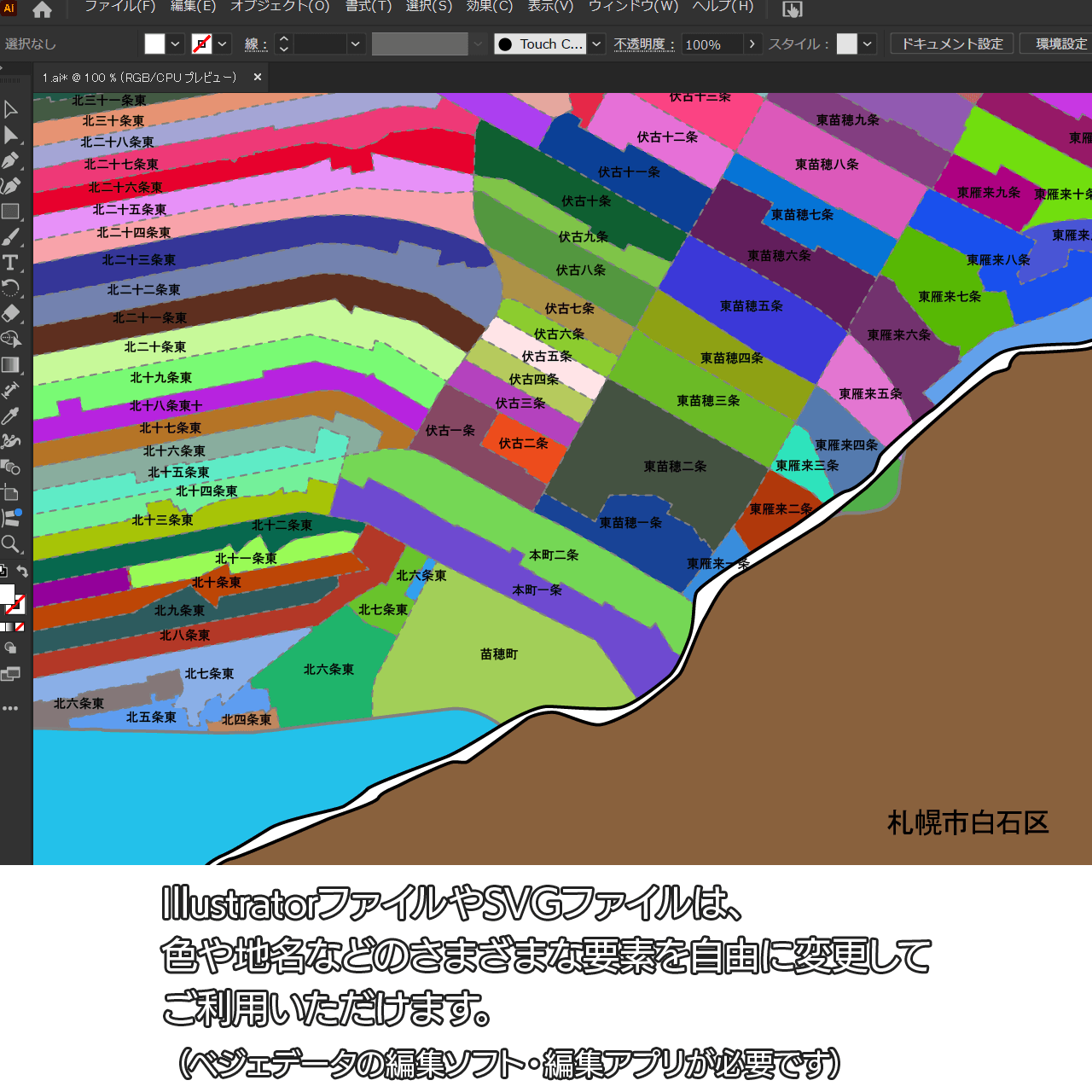 AiファイルはAdobe Illustratorで再編集可能な白地図データです。