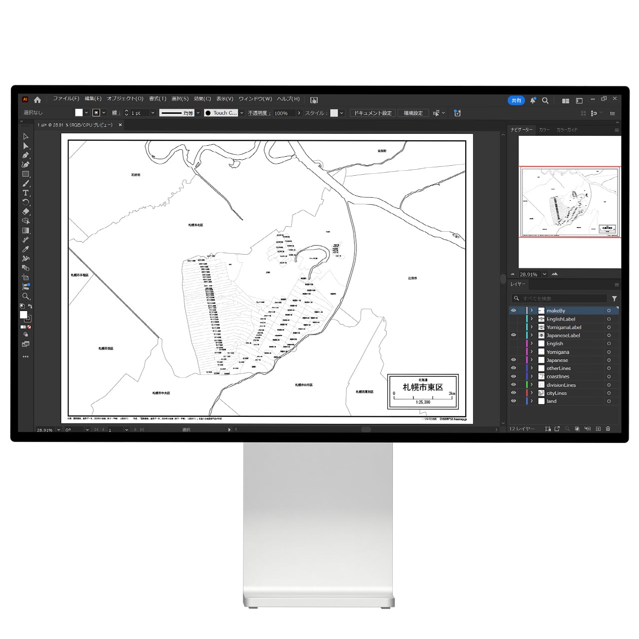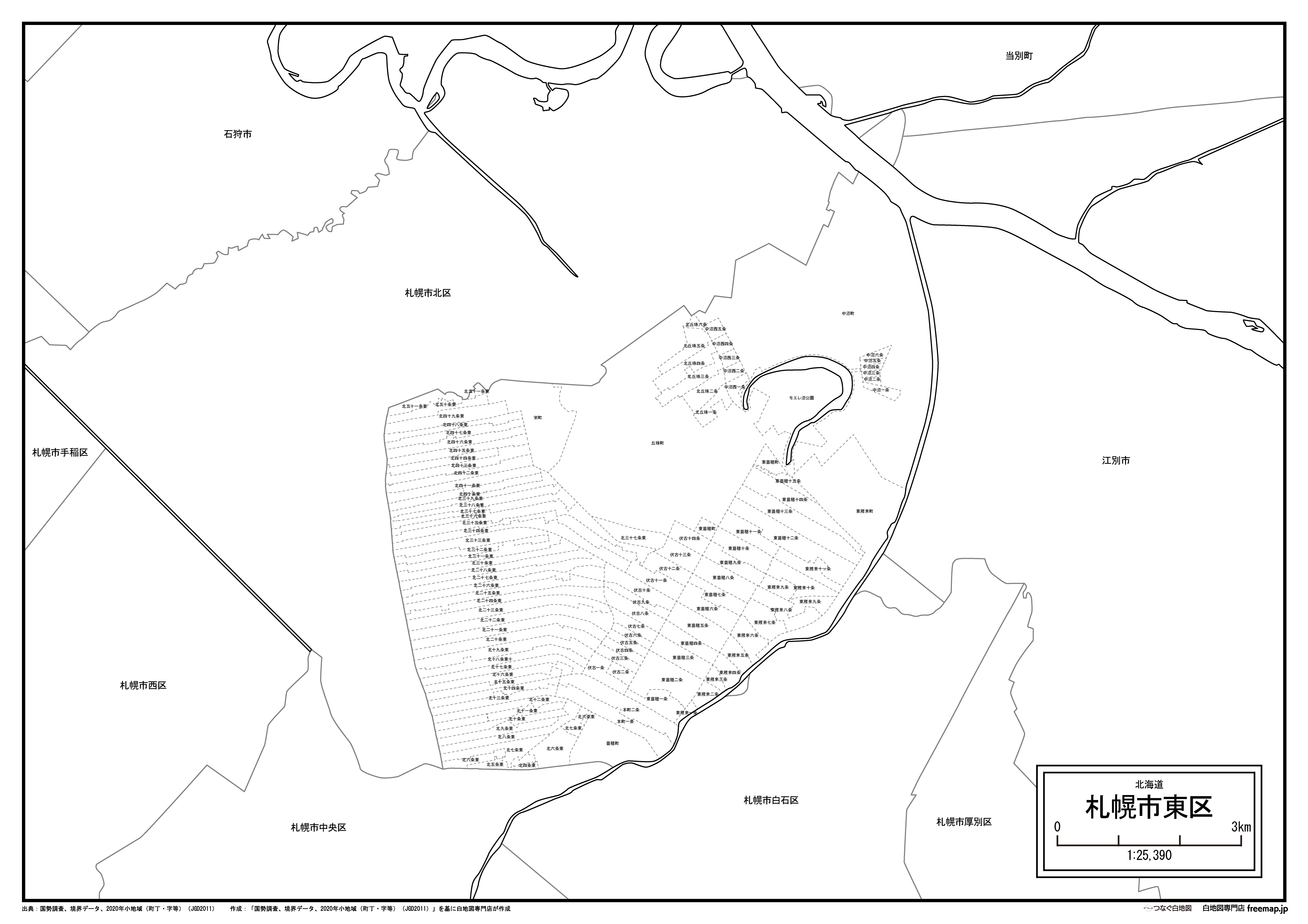 札幌市東区:町名も記載の地図データ(PDF・Aiファイル)