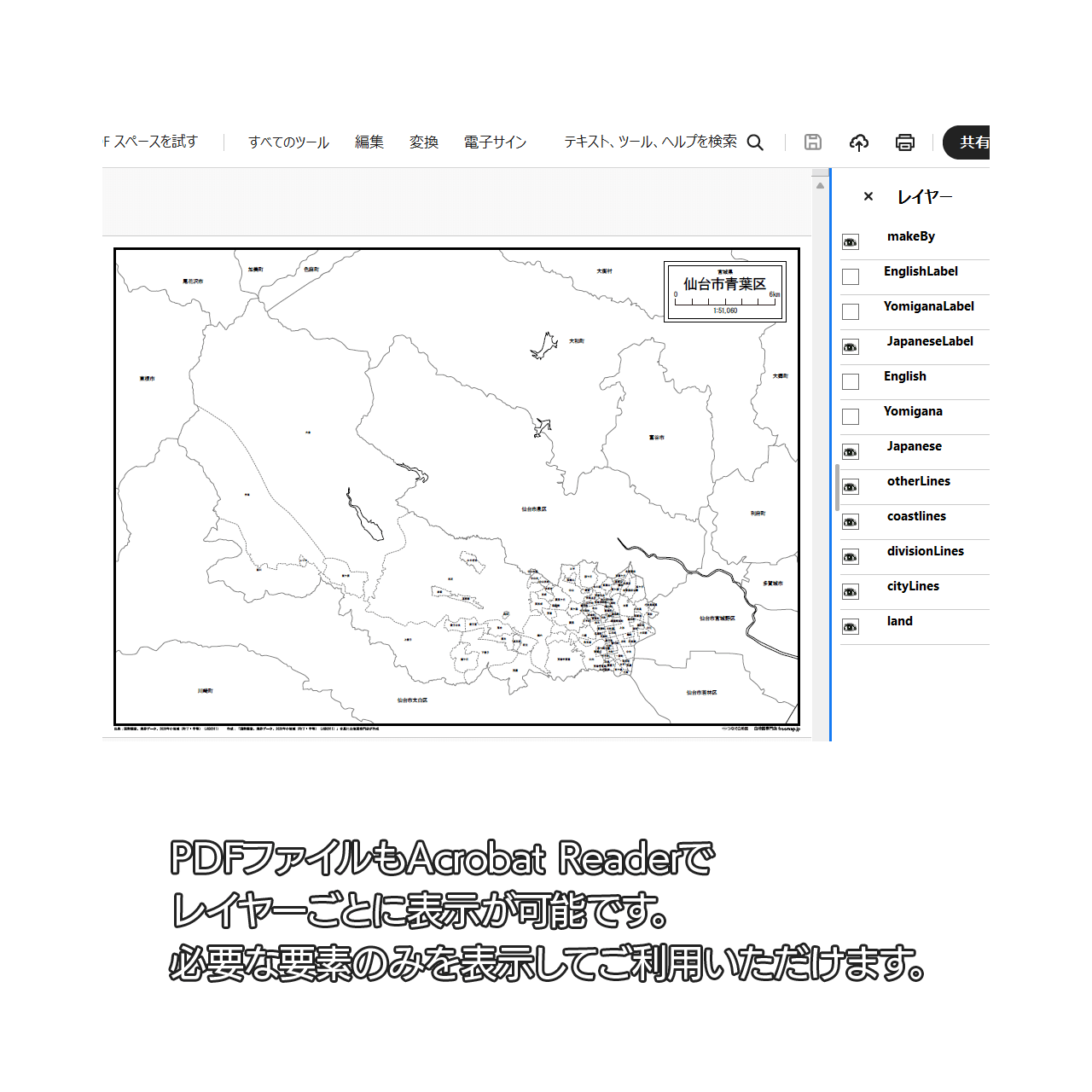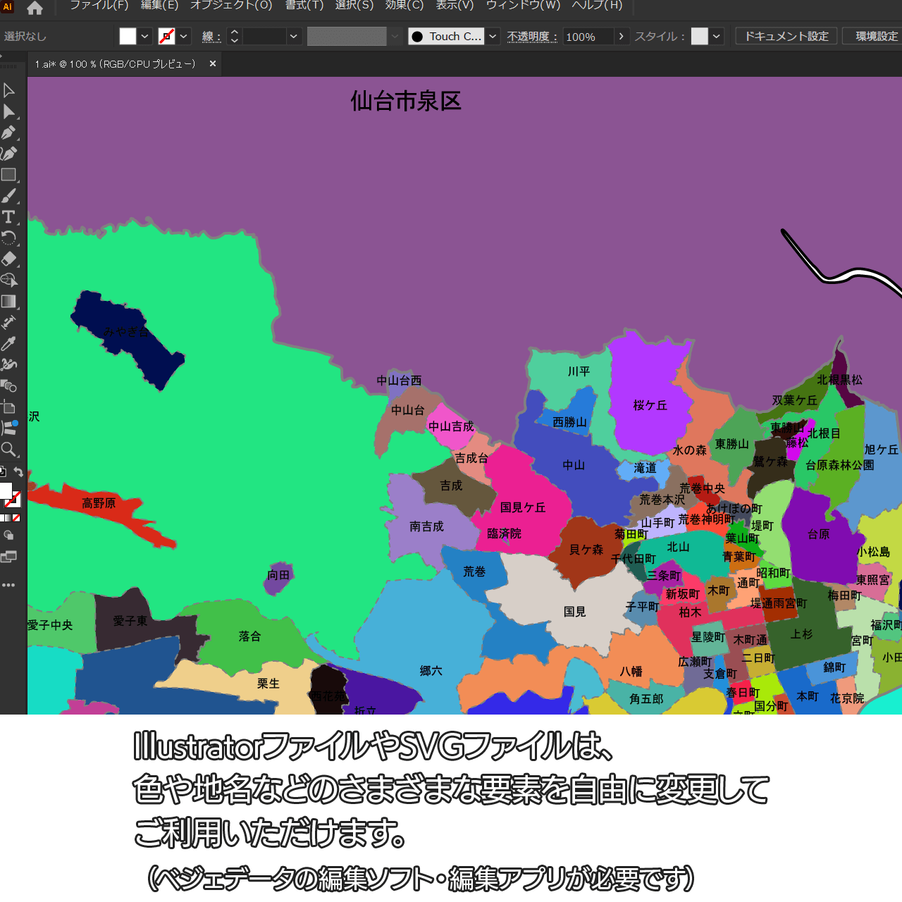 仙台市青葉区:町名も記載の地図データ(PDF・Aiファイル)