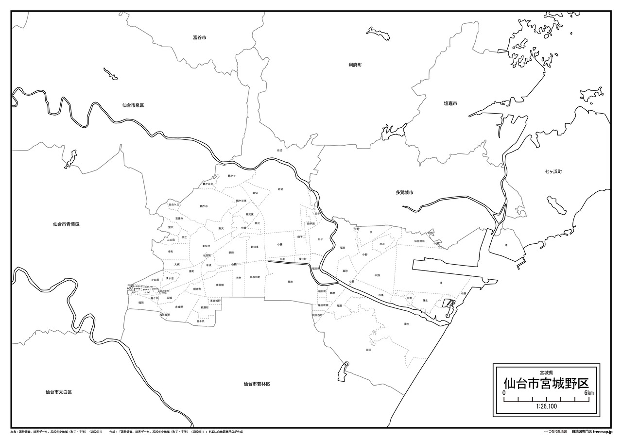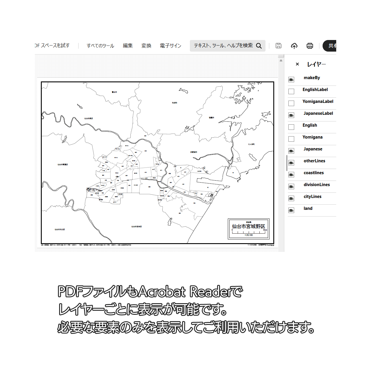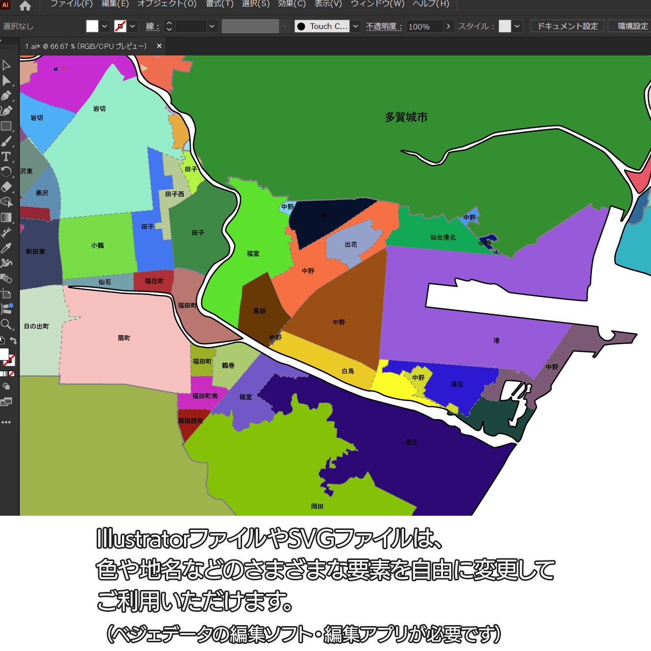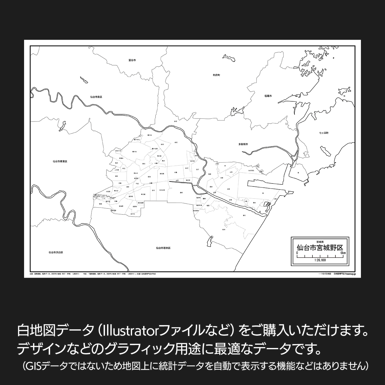 仙台市宮城野区:町名も記載の地図データ(PDF・Aiファイル)
