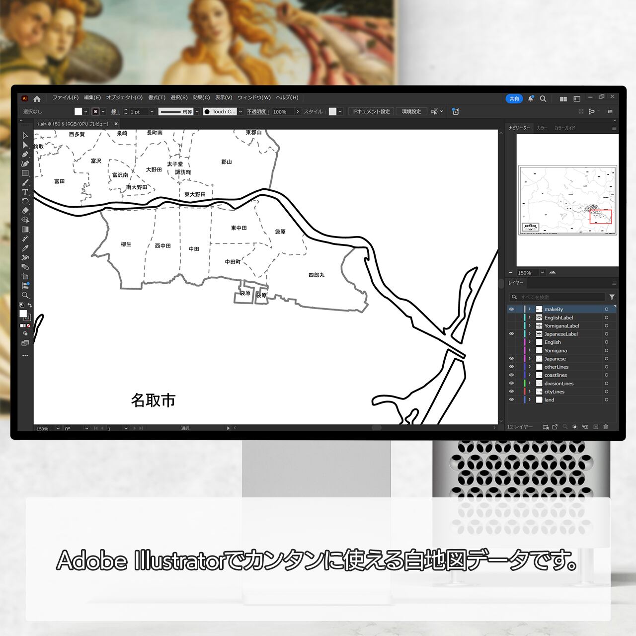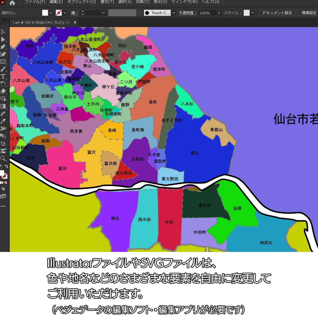 AiファイルはAdobe Illustratorで再編集可能な白地図データです。
