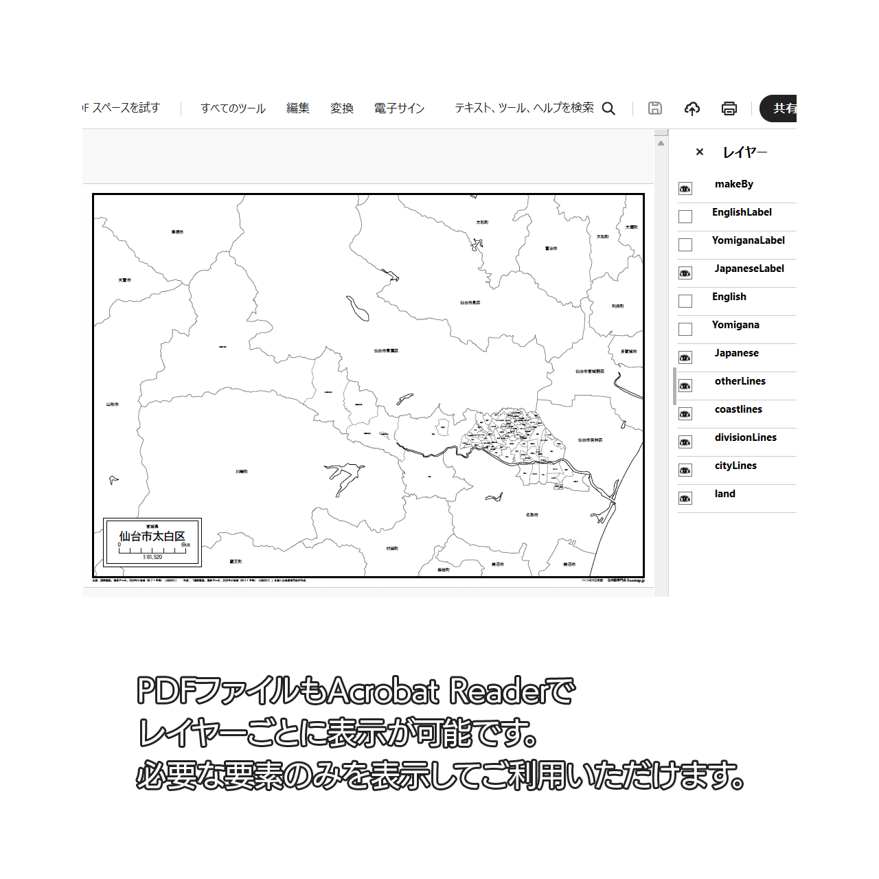 仙台市太白区:町名も記載の地図データ(PDF・Aiファイル)