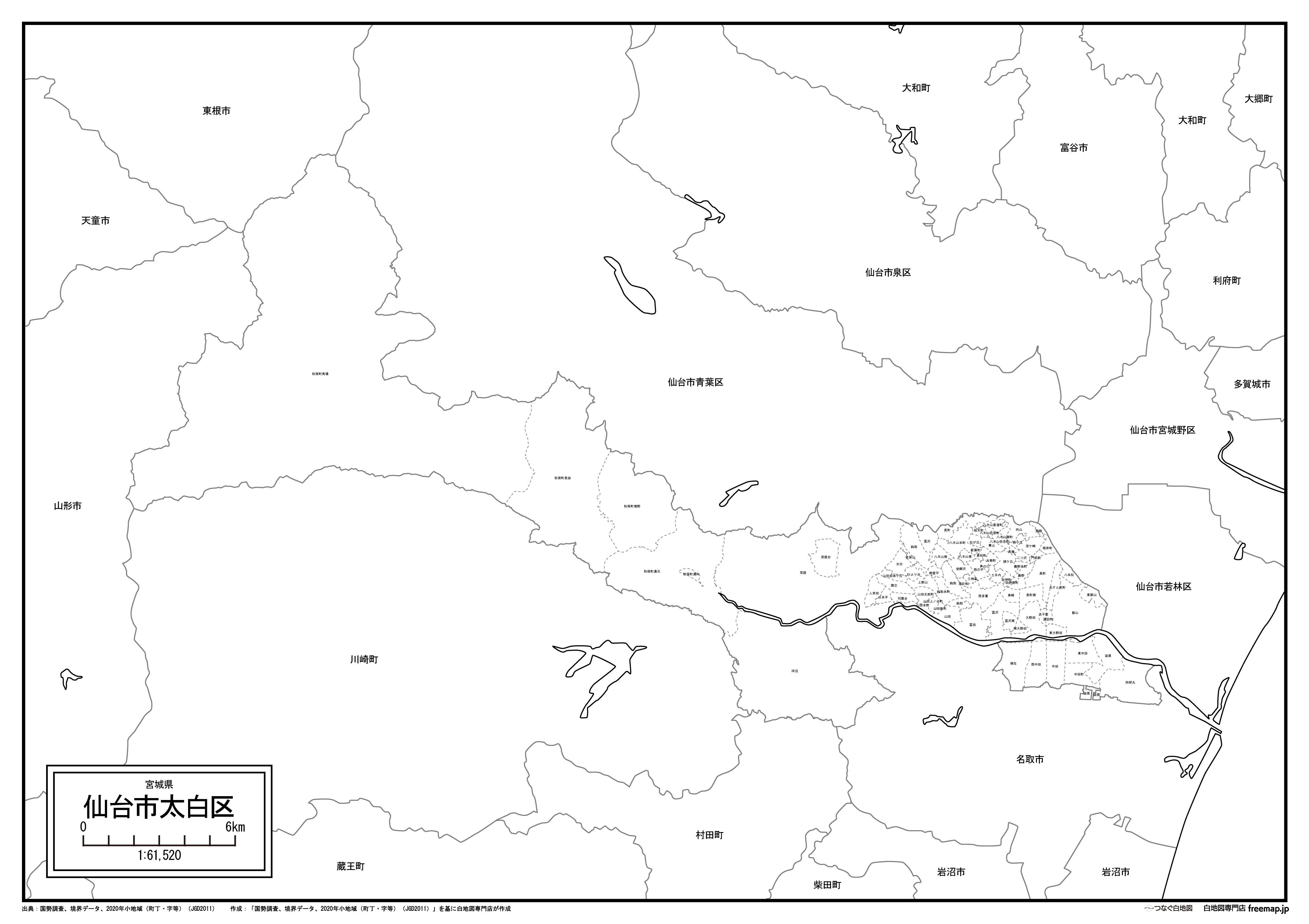 仙台市太白区の町名・大字を記載した地図データです。