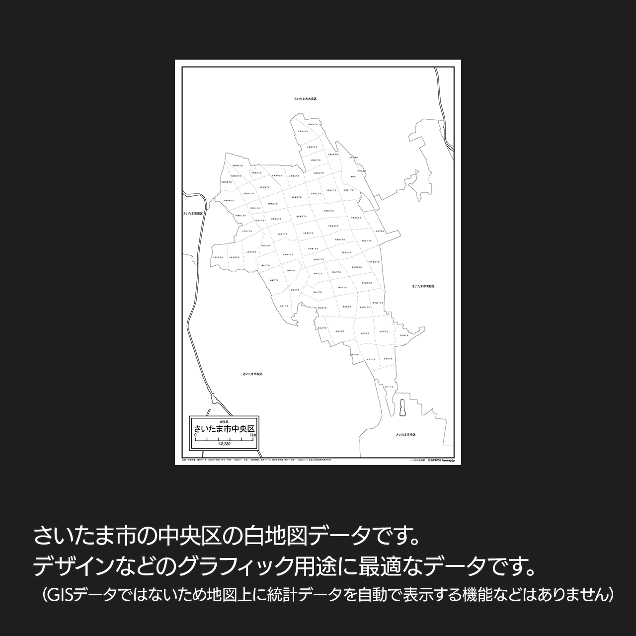 さいたま市中央区の町名(町丁目)も記載した地図データです。