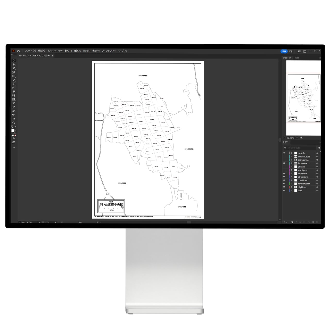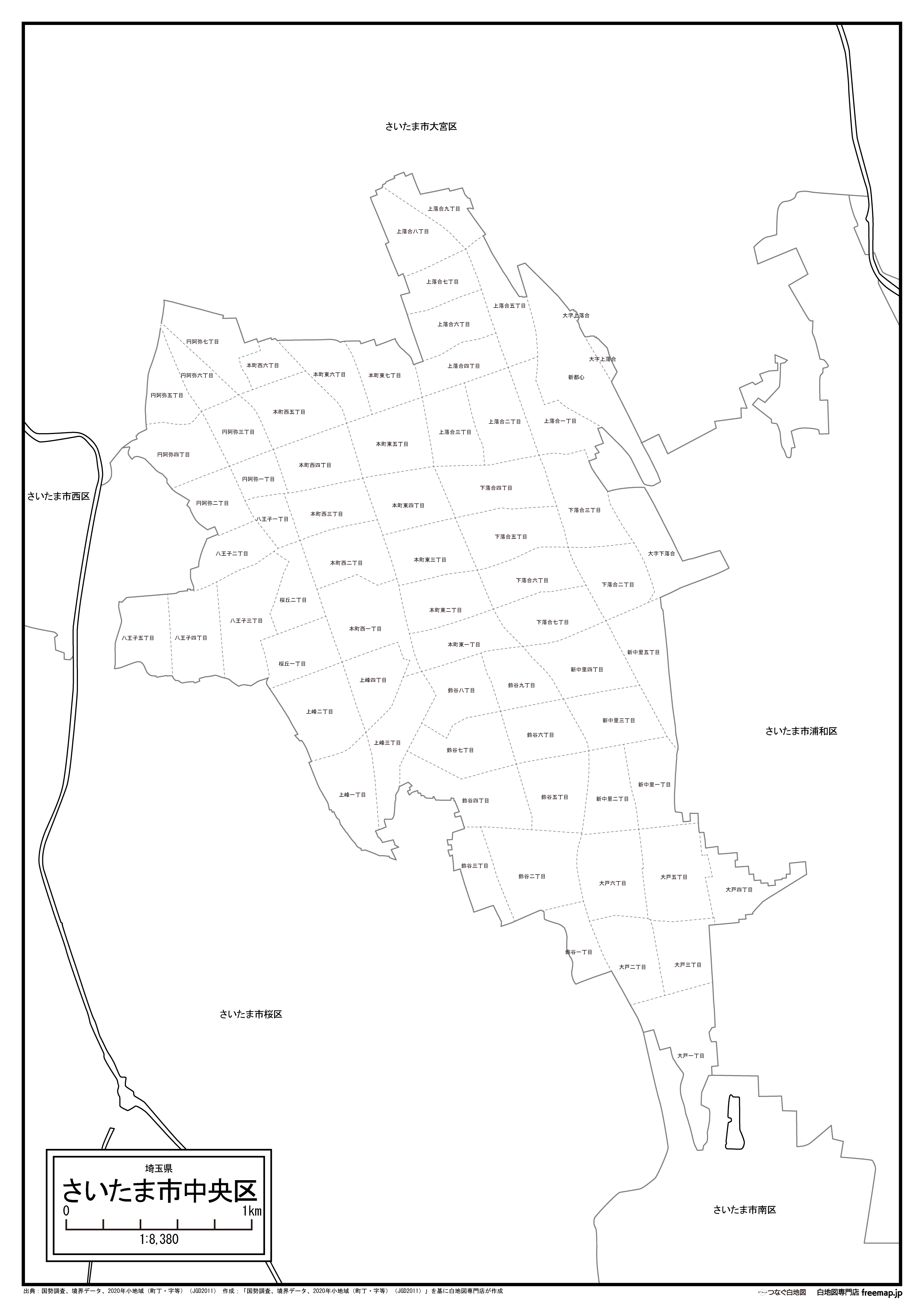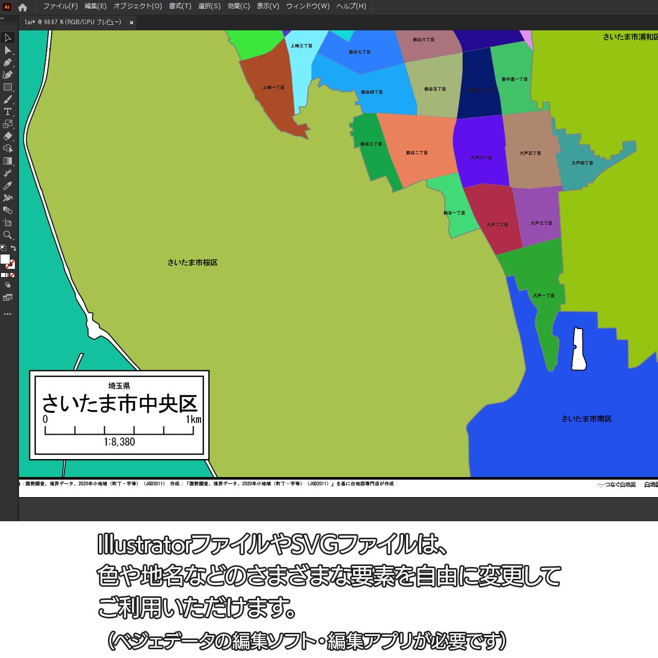 さいたま市中央区:町名も記載の地図データ(PDF・Aiファイル)