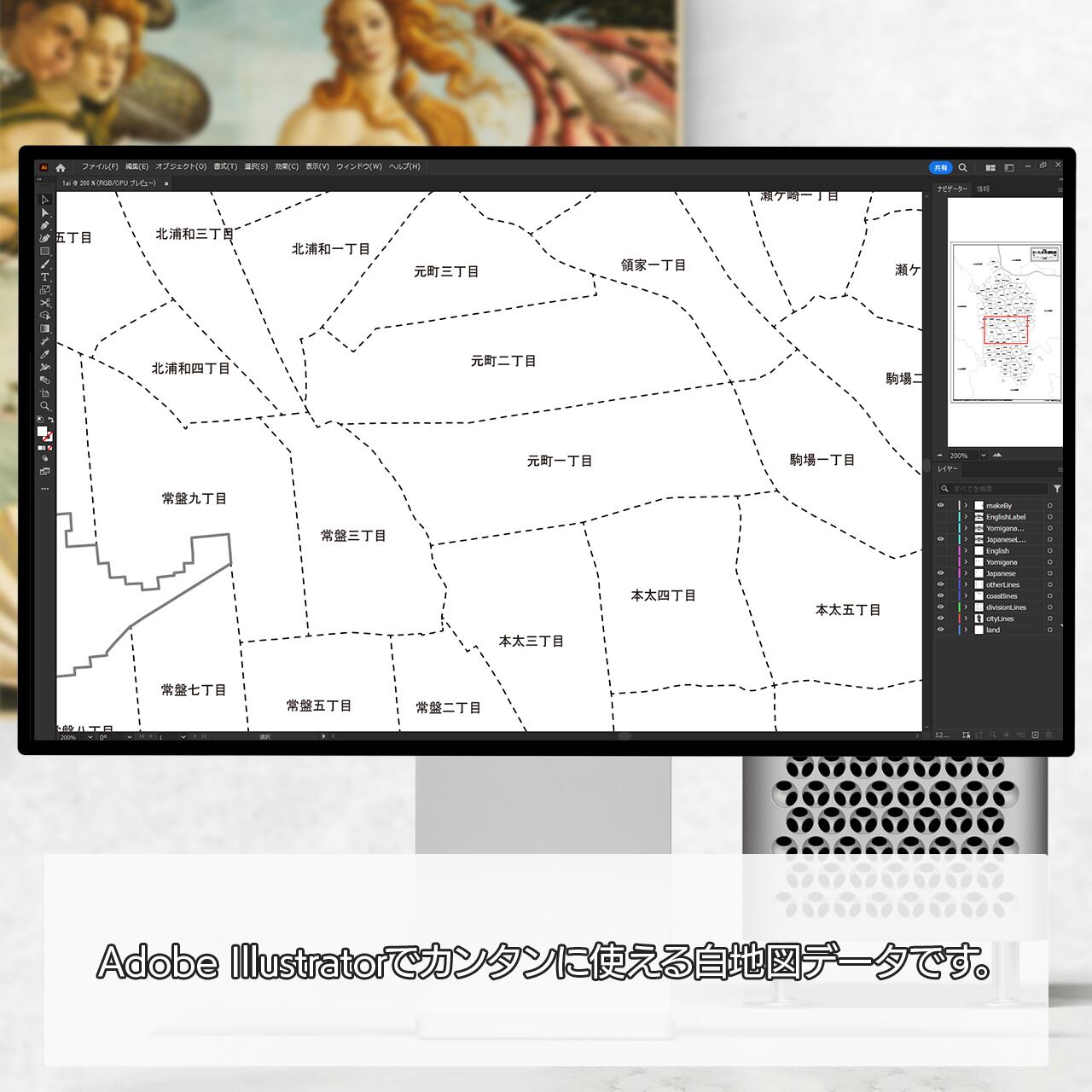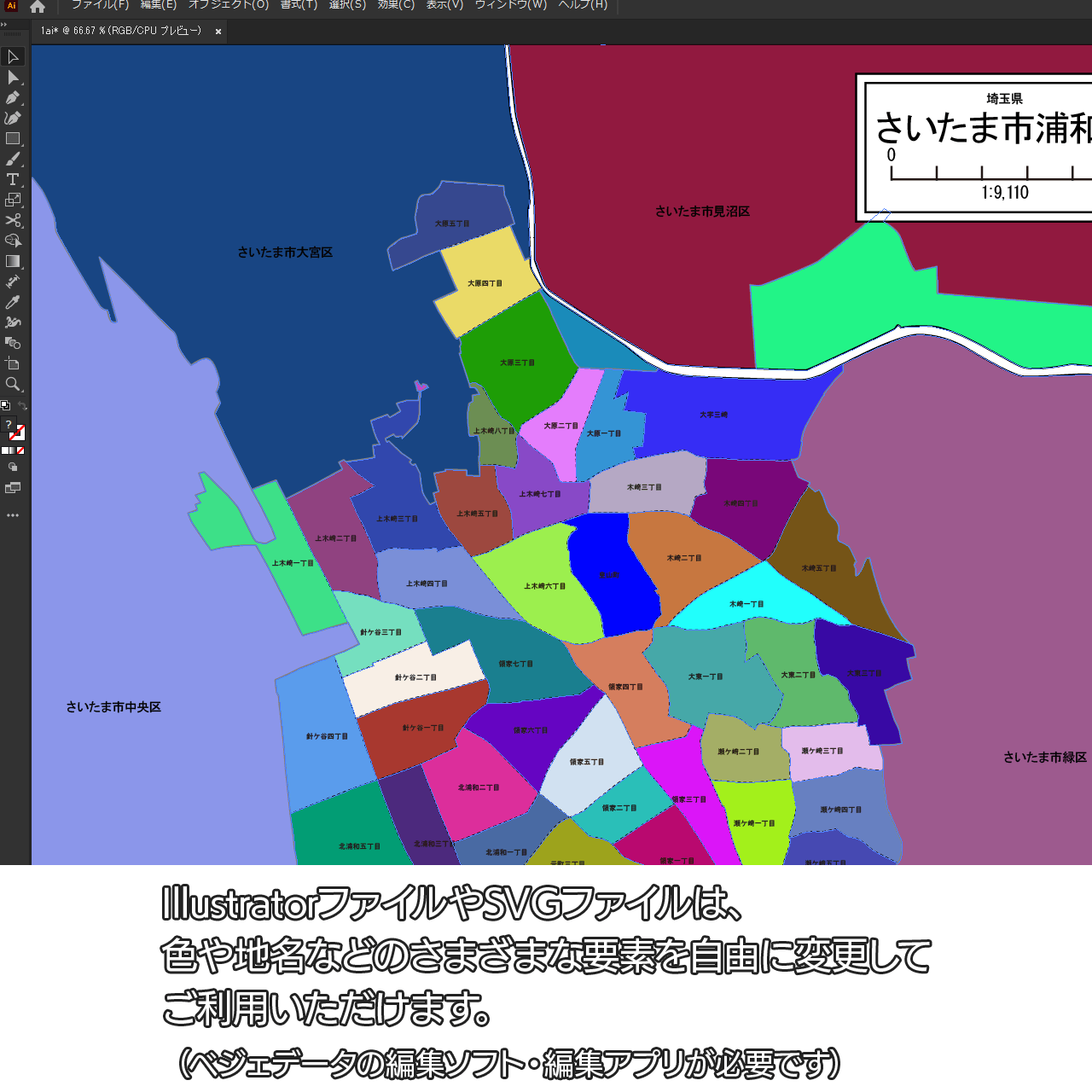 さいたま市浦和区:町名も記載の地図データ(PDF・Aiファイル)