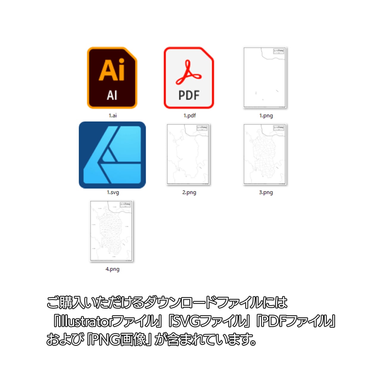 AiファイルはAdobe Illustratorで再編集可能な白地図データです。