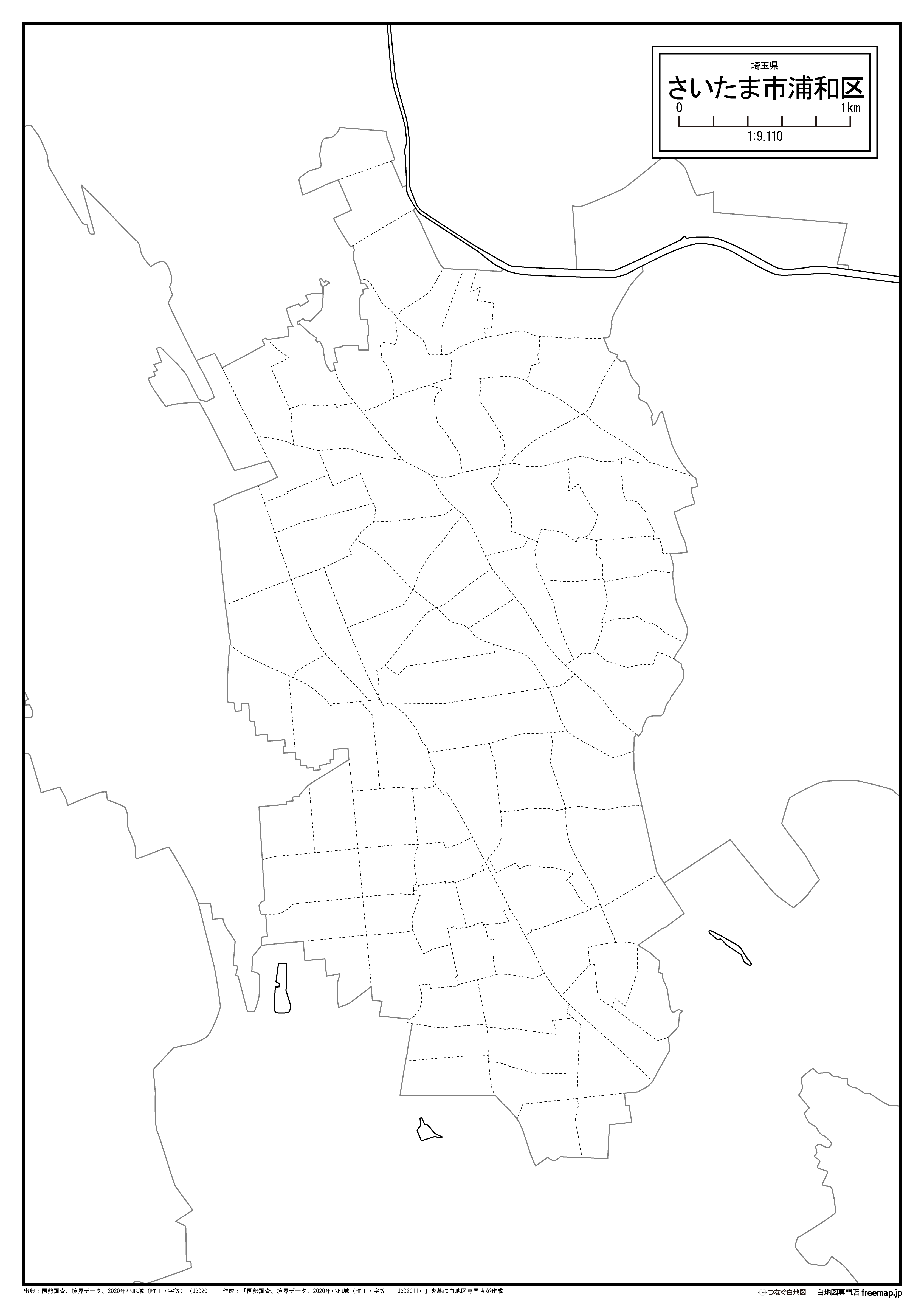 さいたま市浦和区の町名(町丁目)も記載した地図データです。