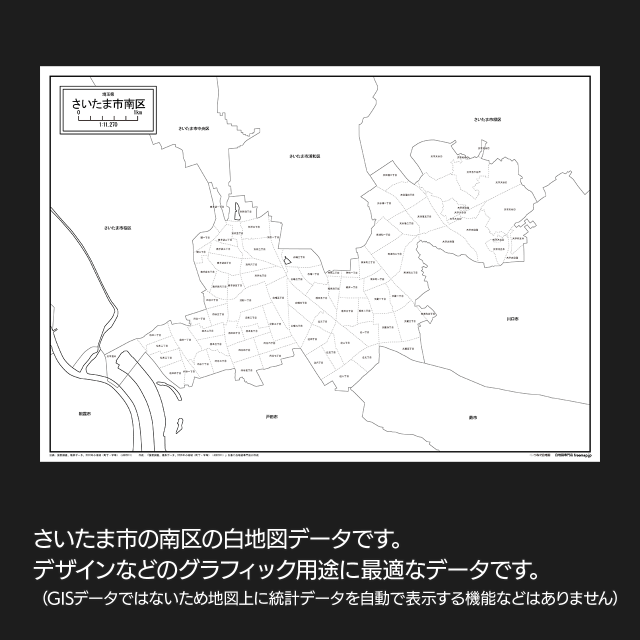 さいたま市南区の町名(町丁目)も記載した地図データです。