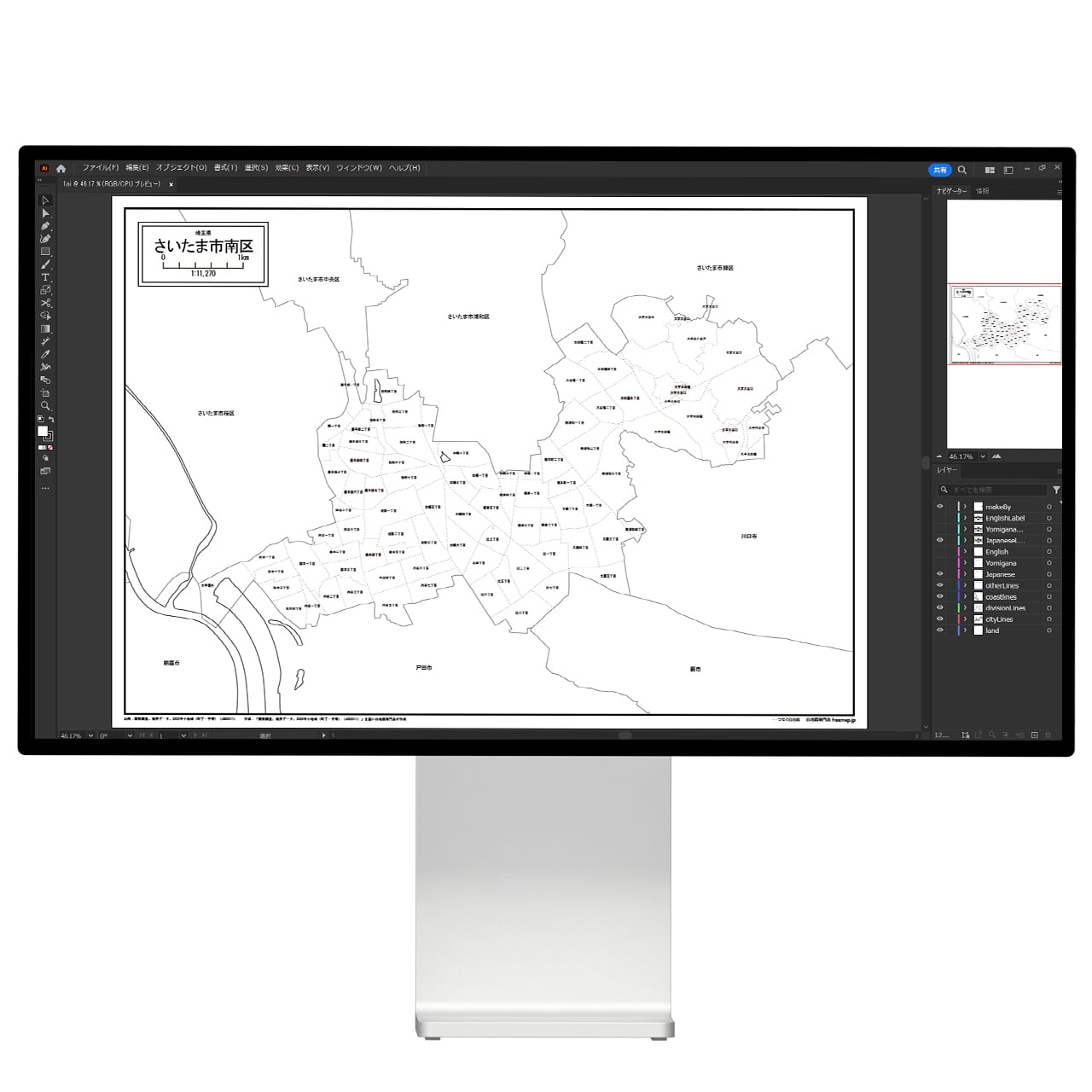 さいたま市南区:町名も記載の地図データ(PDF・Aiファイル)
