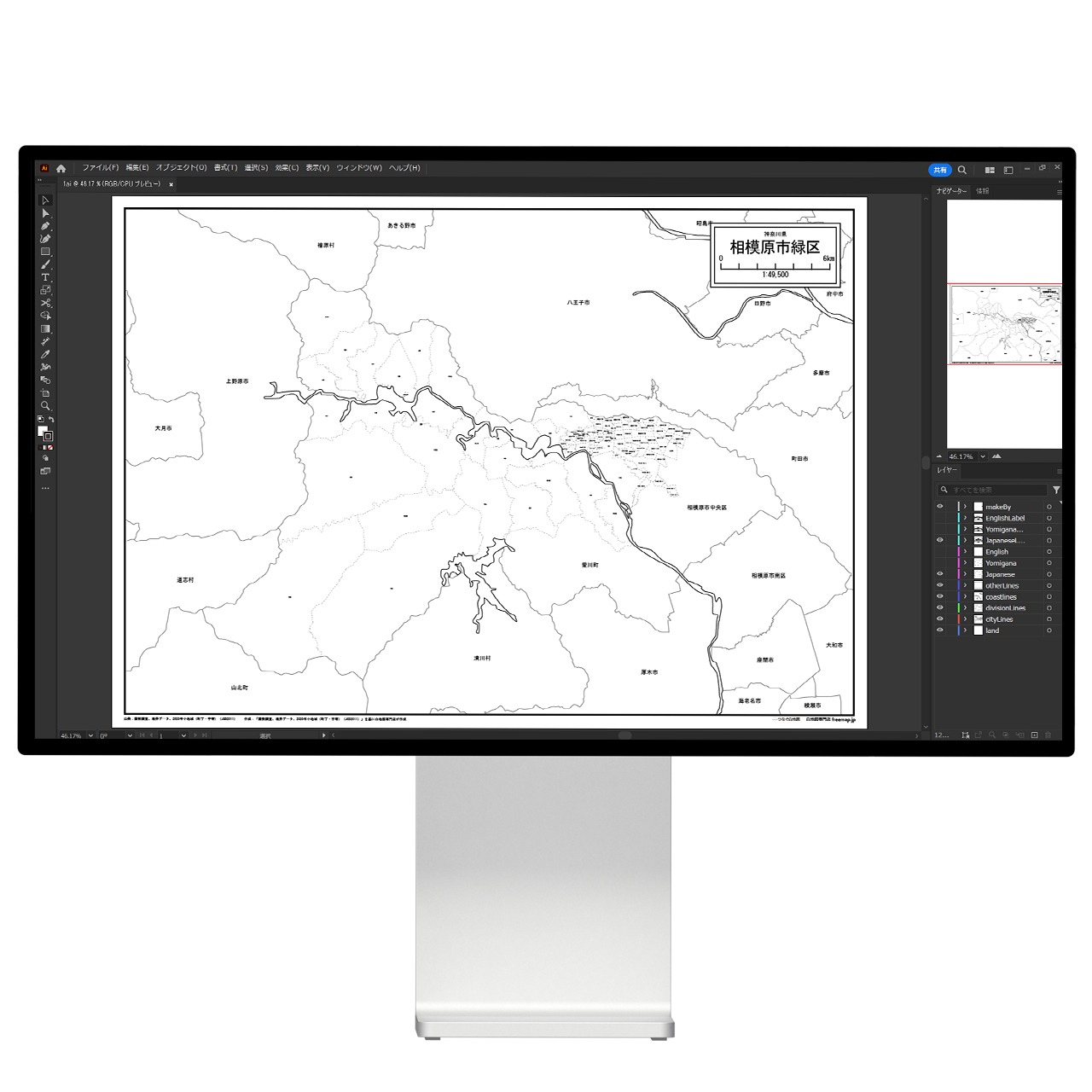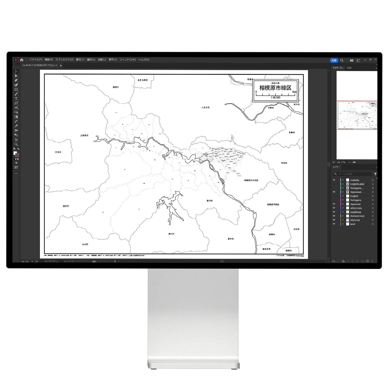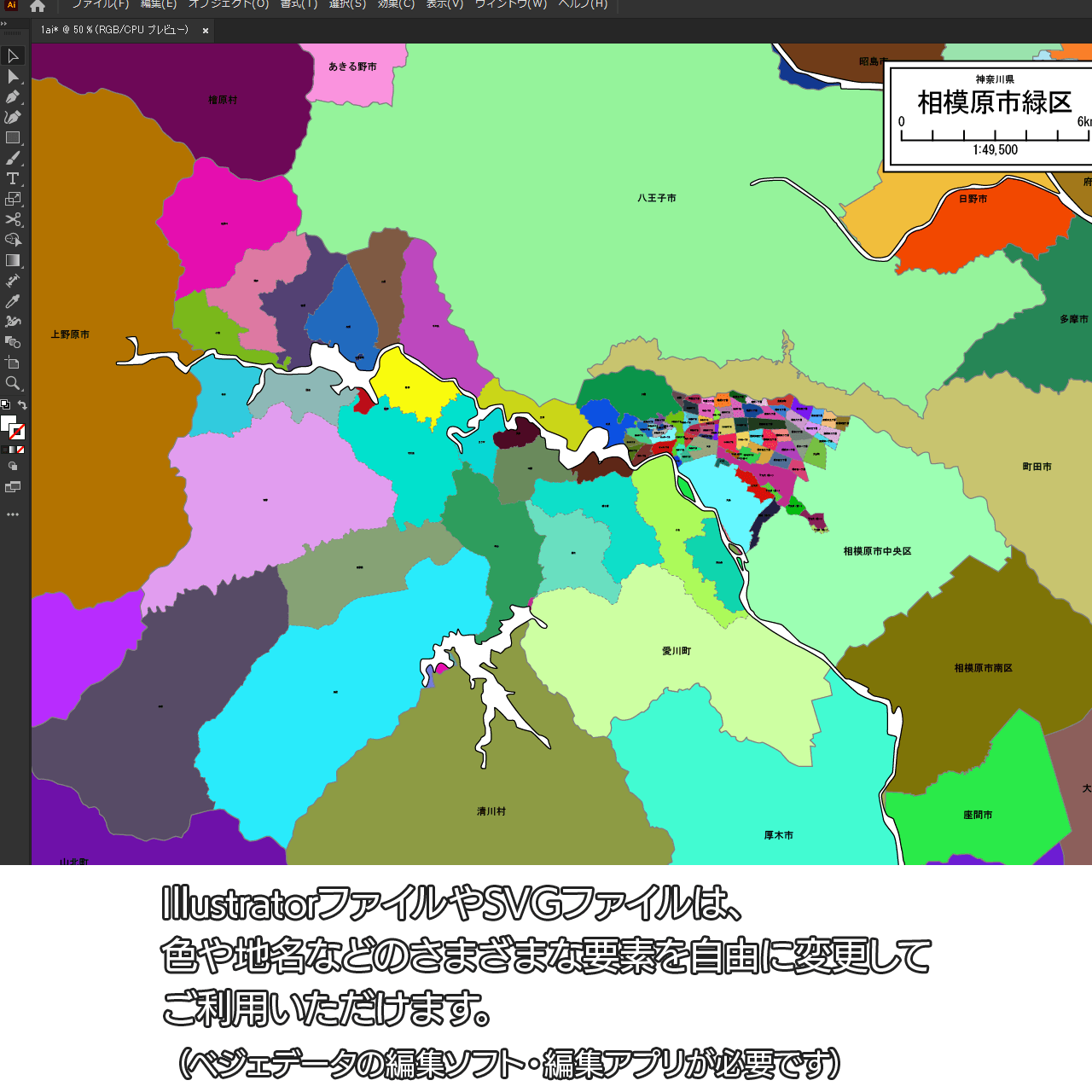 相模原市緑区:町名も記載の地図データ(PDF・Aiファイル)
