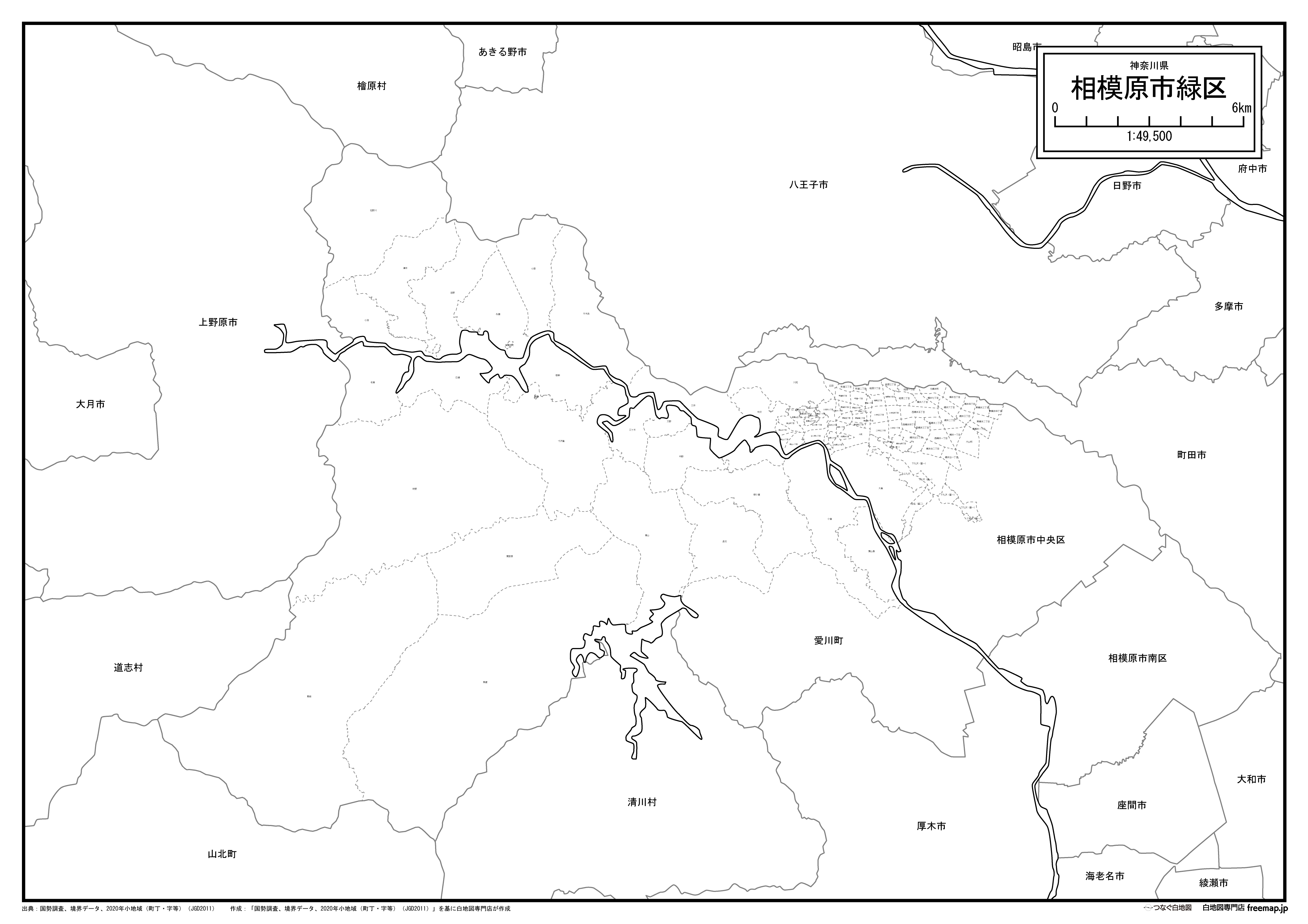 相模原市緑区の町名(町丁目)も記載した地図データです。