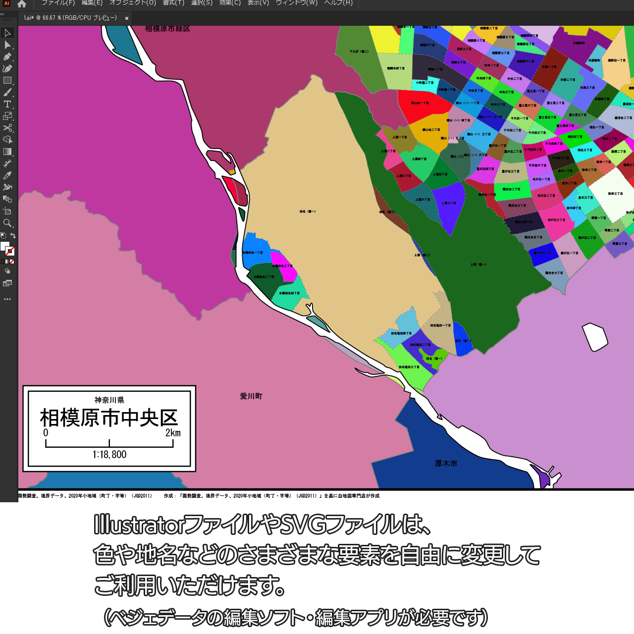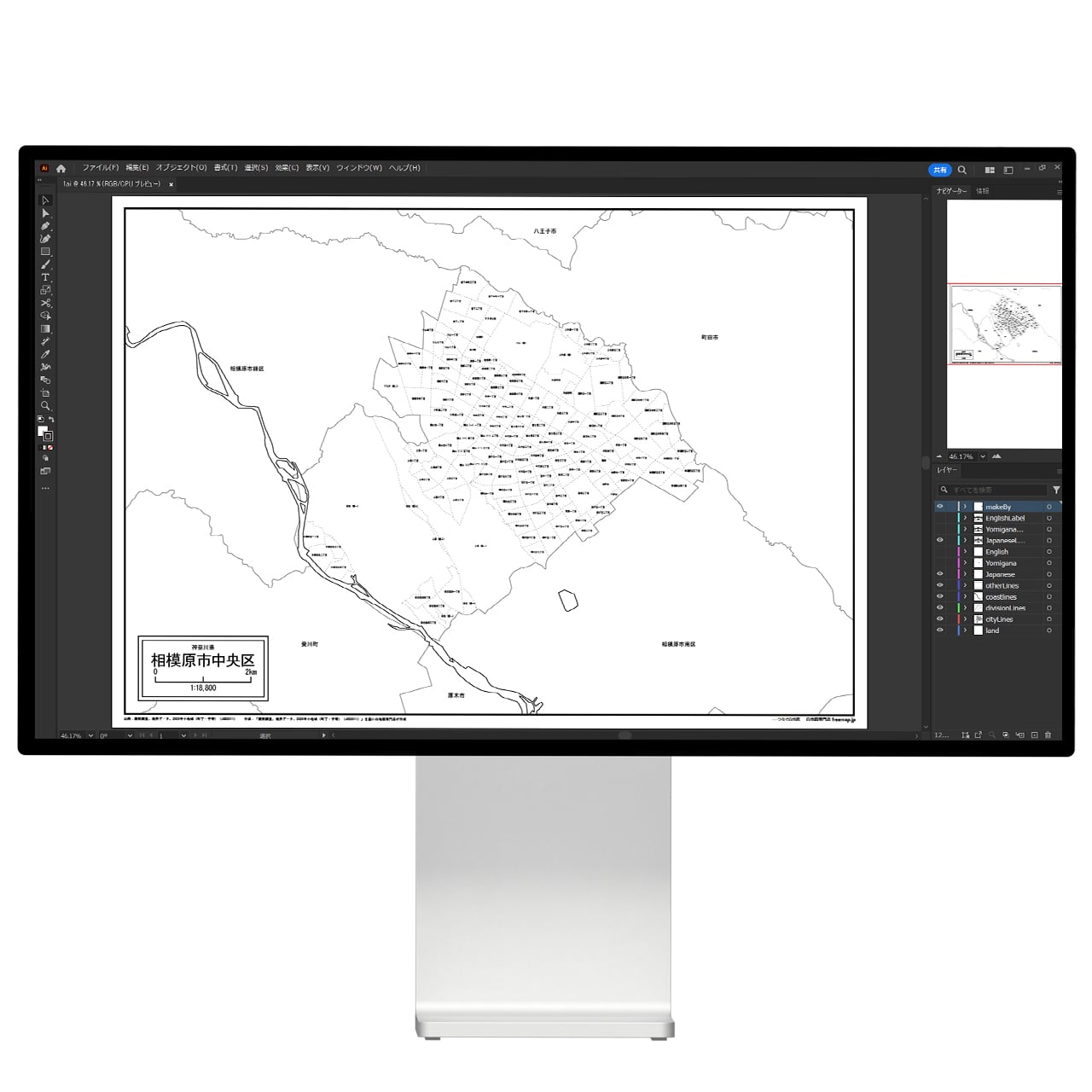相模原市中央区:町名も記載の地図データ(PDF・Aiファイル)