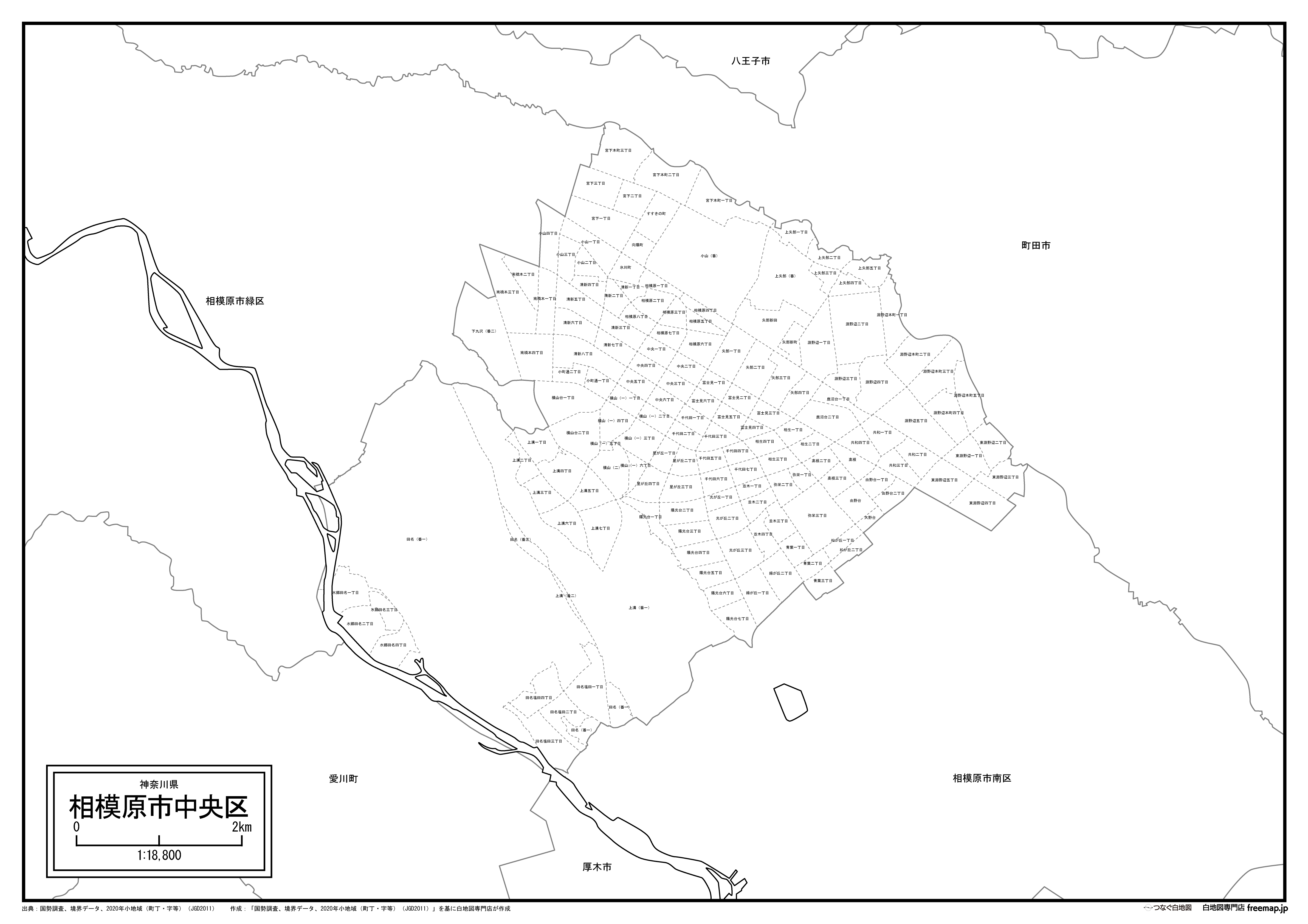 相模原市中央区の町名(町丁目)も記載した地図データです。