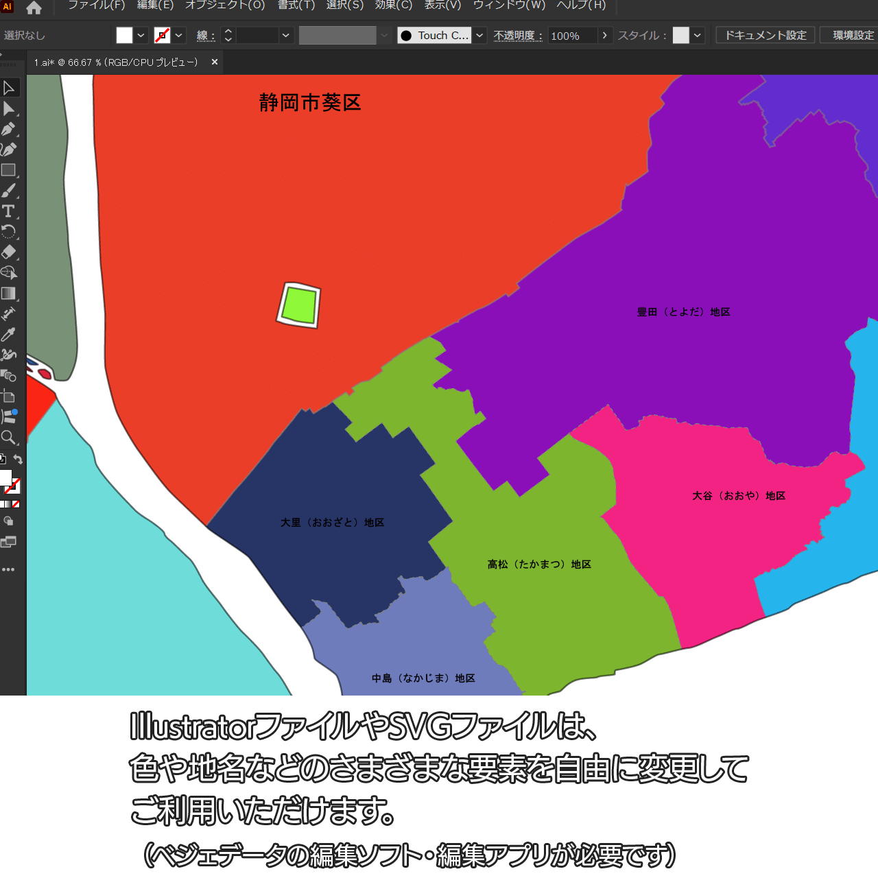静岡市駿河区:地区も記載の地図データ(PDF・Aiファイル)