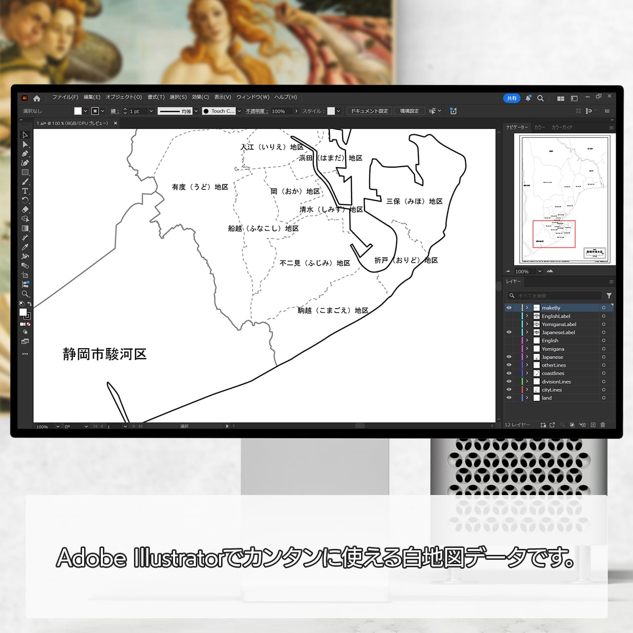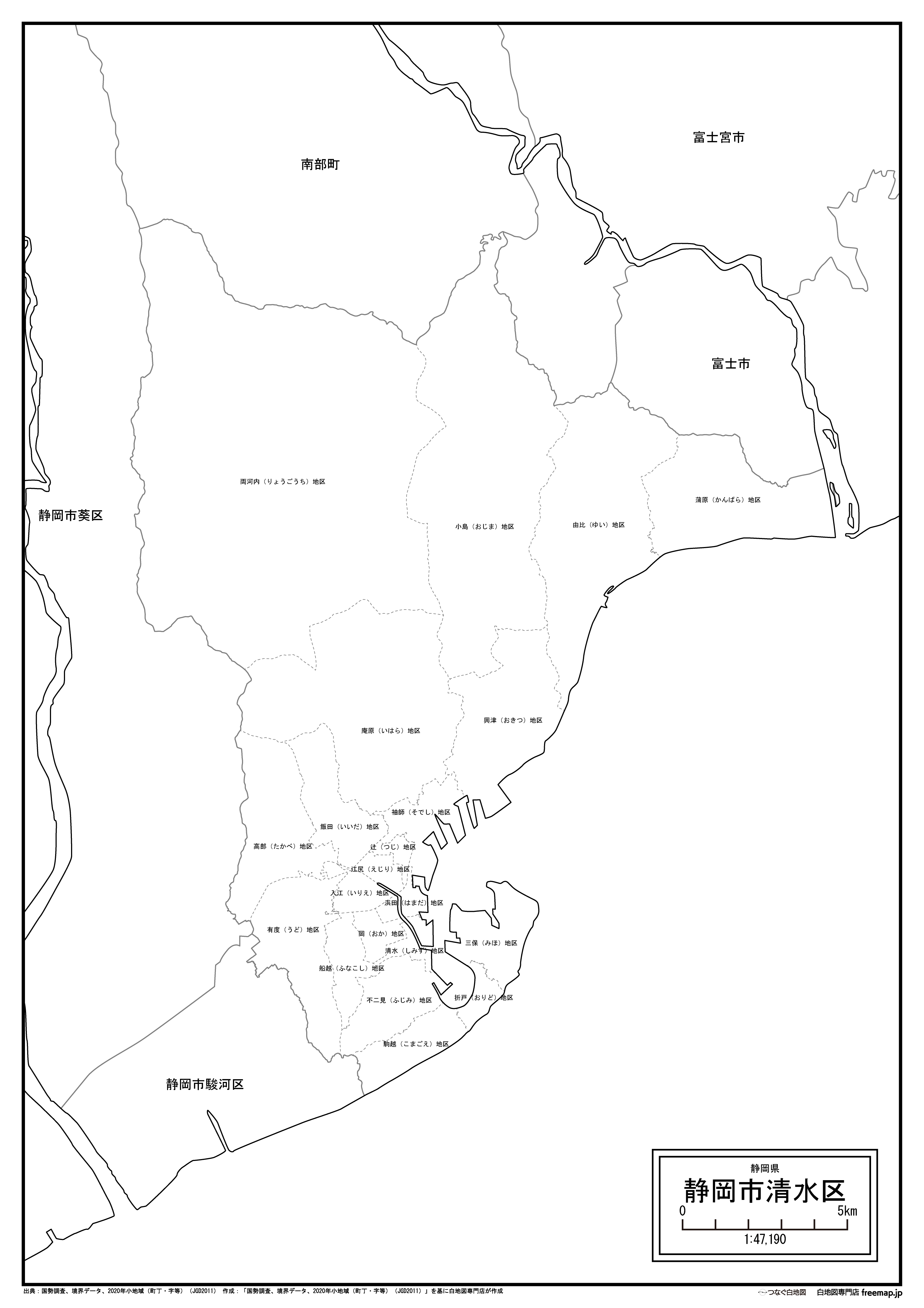 静岡市清水区:地区も記載の地図データ(PDF・Aiファイル)