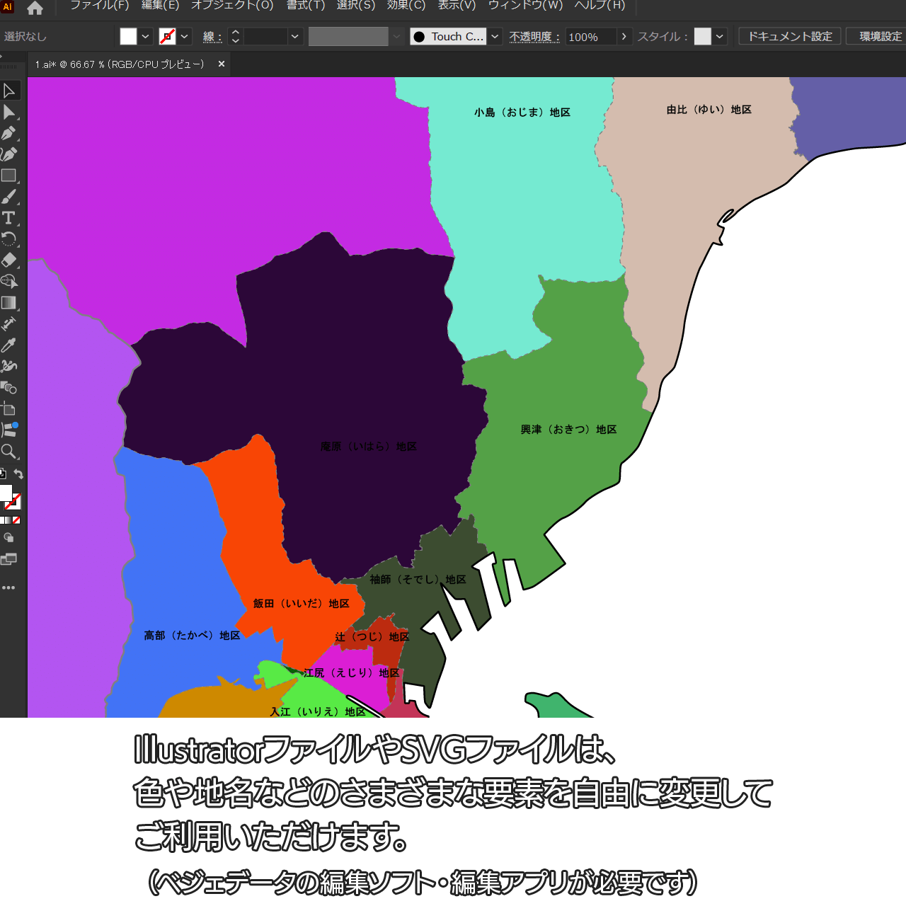 AiファイルはAdobe Illustratorで再編集可能な白地図データです。