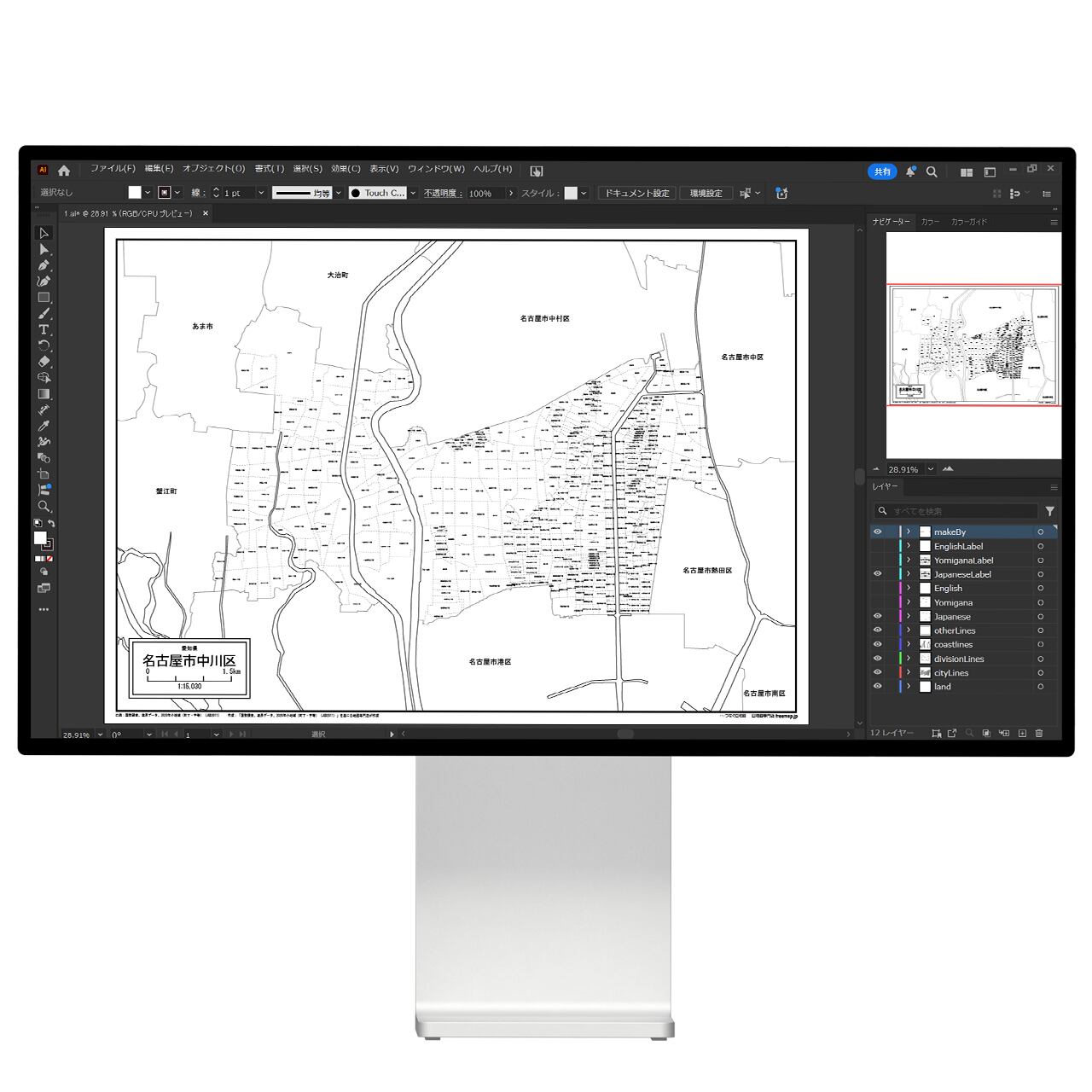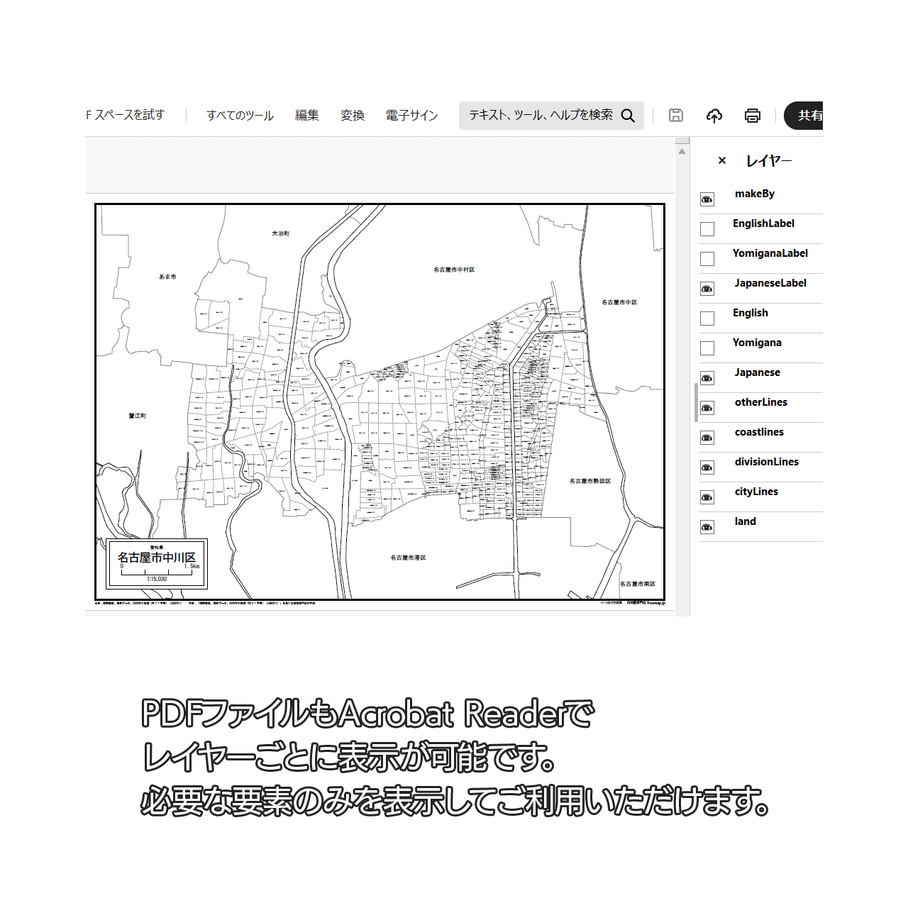 名古屋市中川区:町名も記載の地図データ(PDF・Aiファイル)