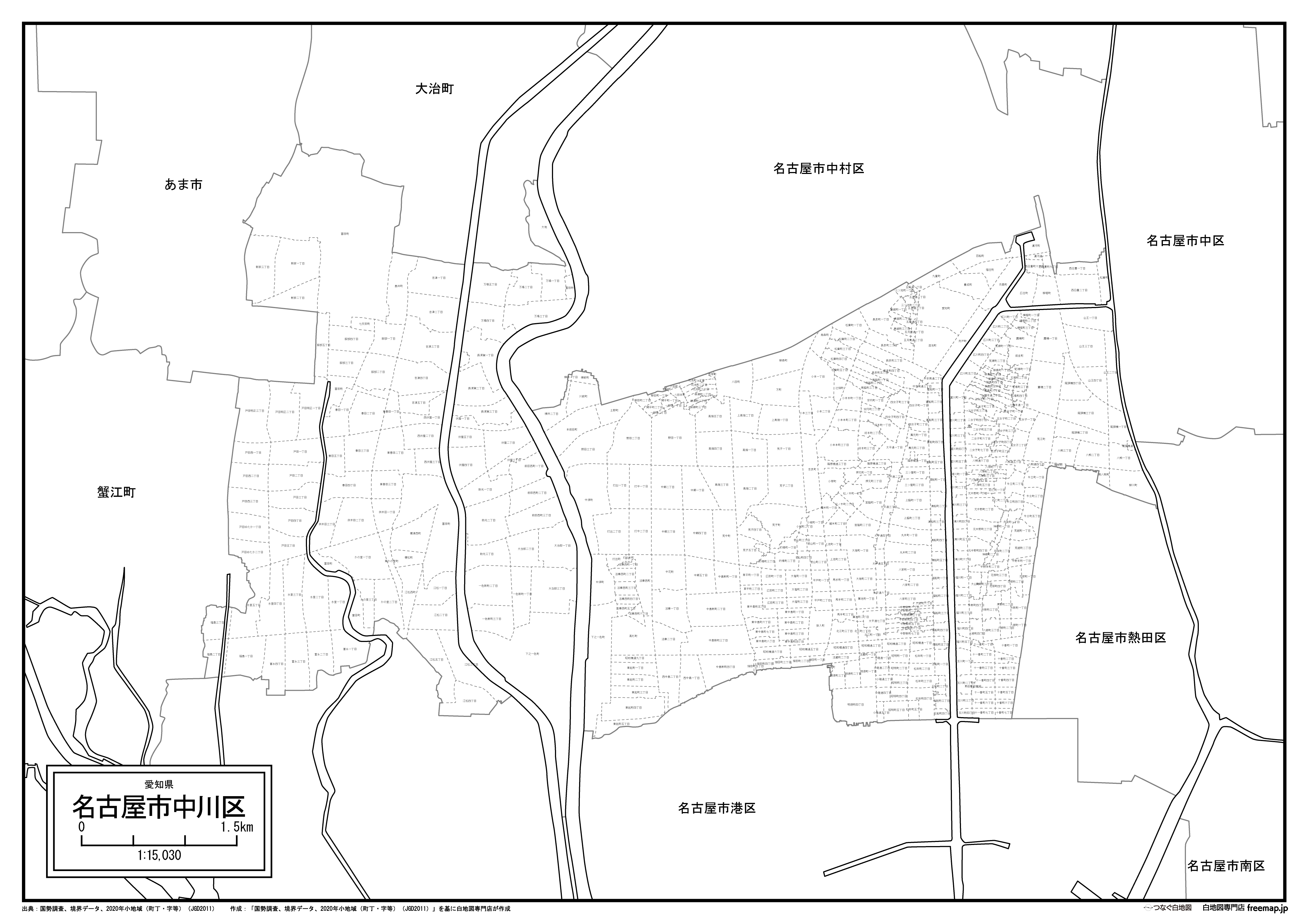 名古屋市中川区の町名(町丁目)も記載した地図データです。
