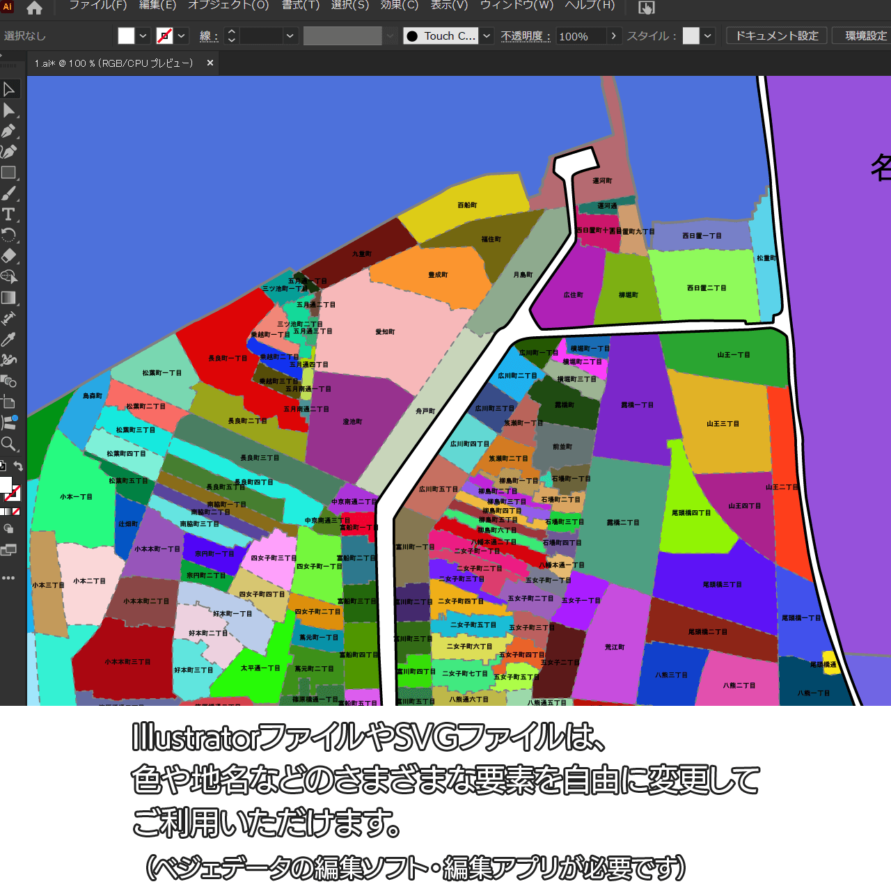 AiファイルはAdobe Illustratorで再編集可能な白地図データです。