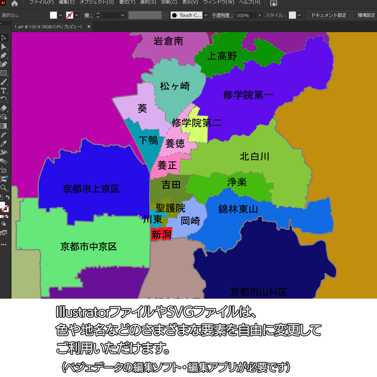AiファイルはAdobe Illustratorで再編集可能な白地図データです。