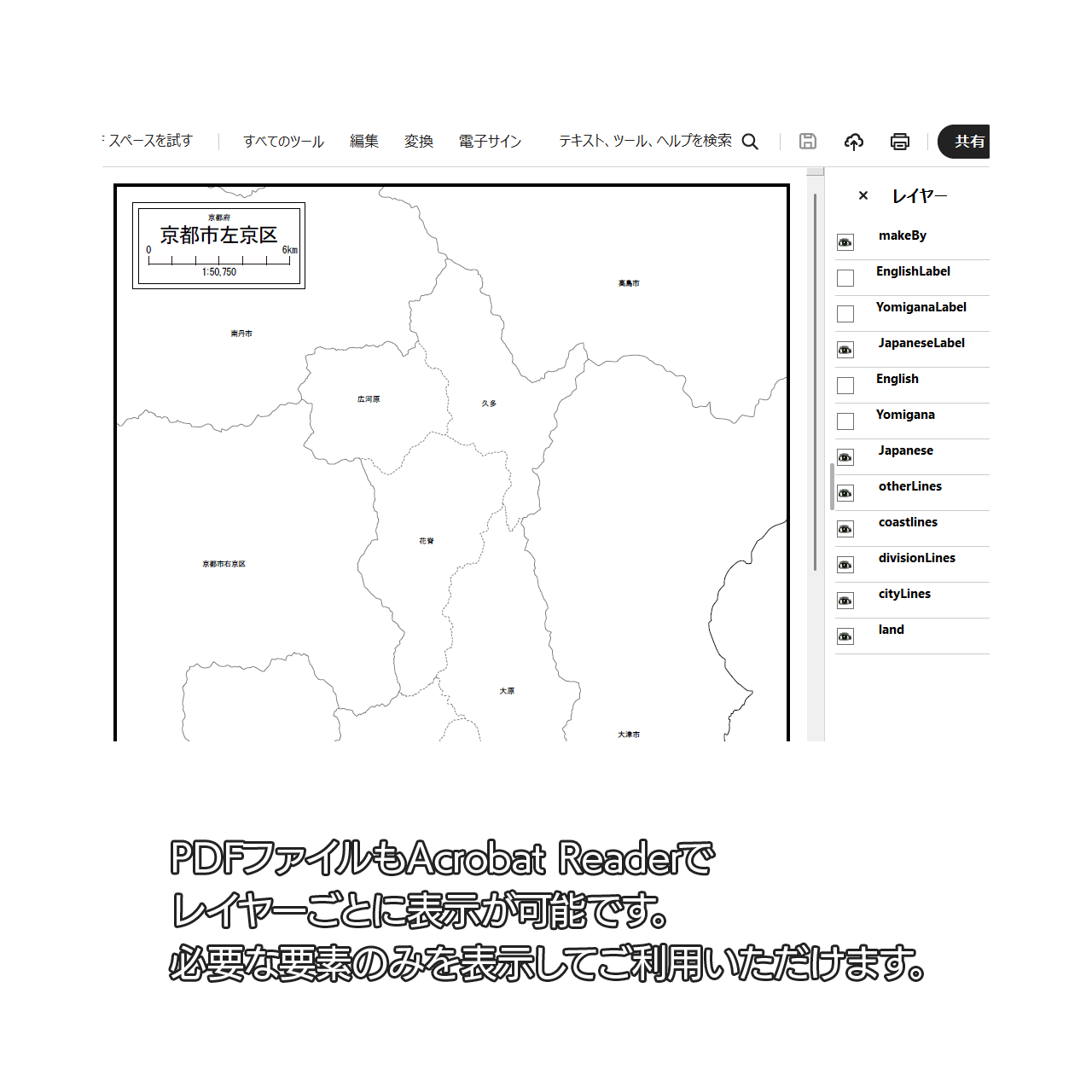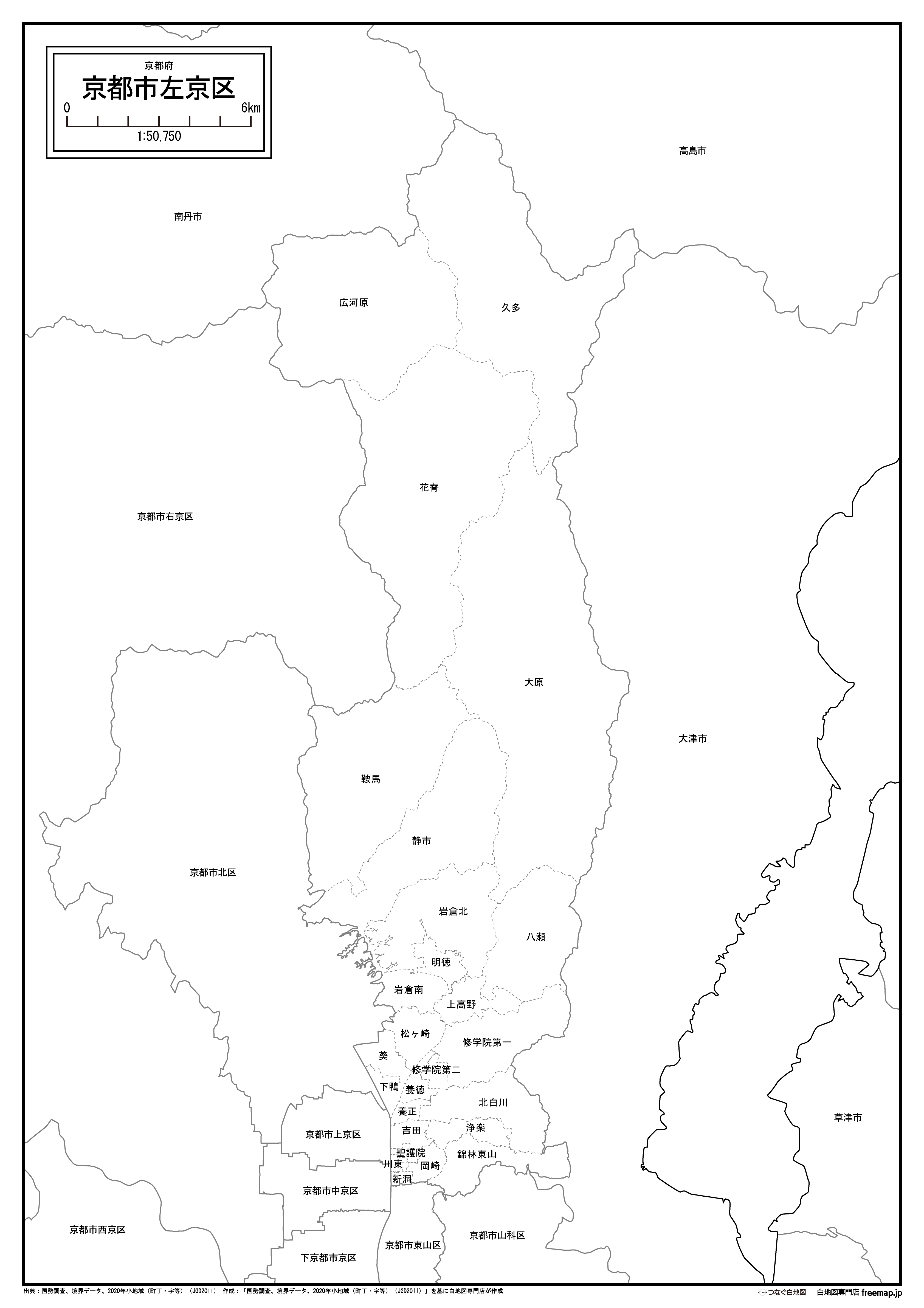 京都市左京区:大字・町名も記載の地図データ(PDF・Aiファイル)