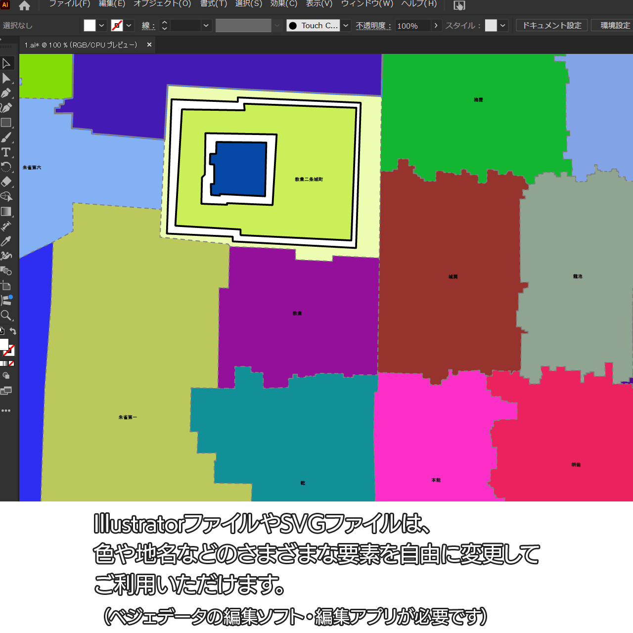 京都市中京区:大字・町名も記載の地図データ(PDF・Aiファイル)