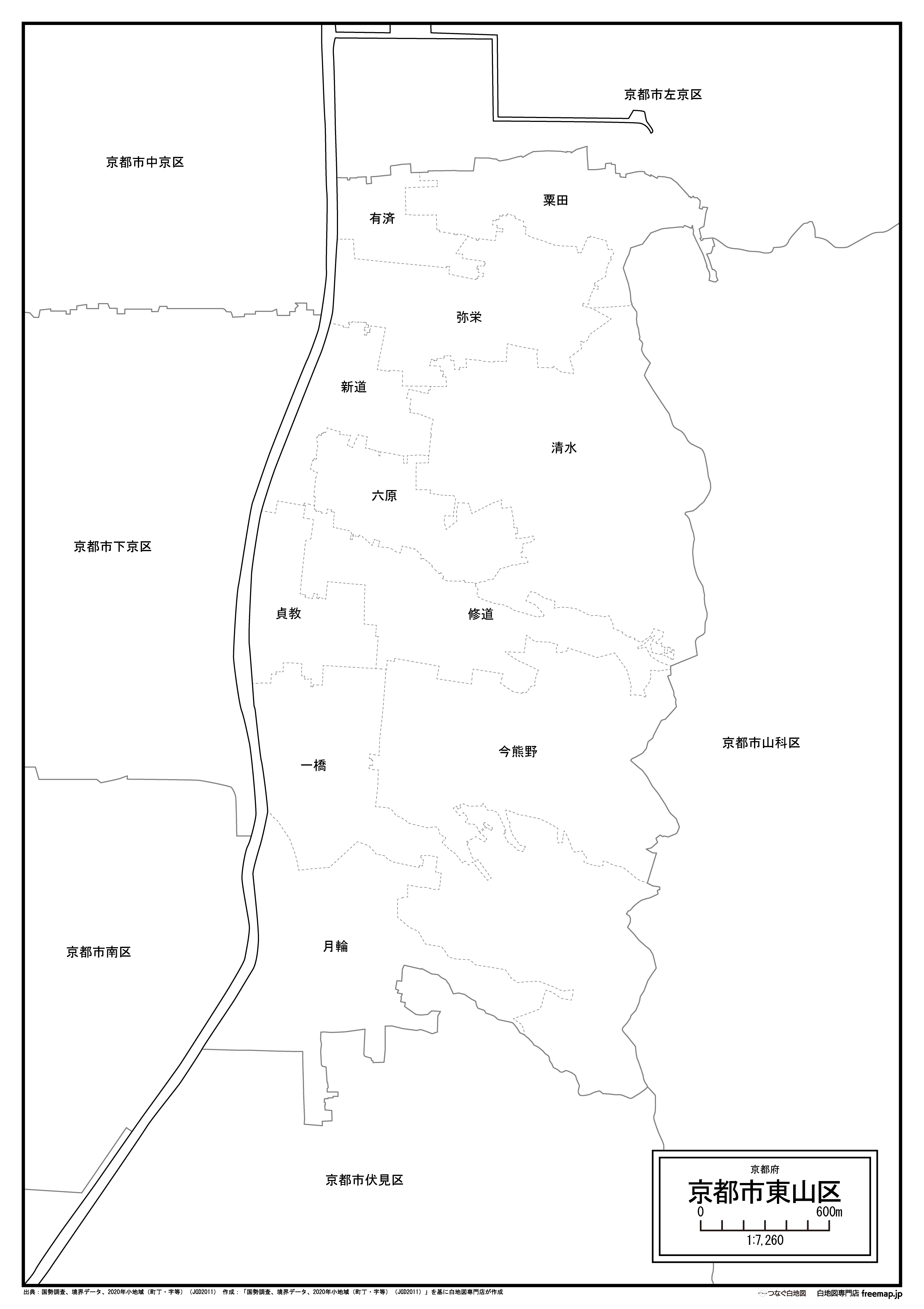 京都市東山区:大字・町名も記載の地図データ(PDF・Aiファイル)