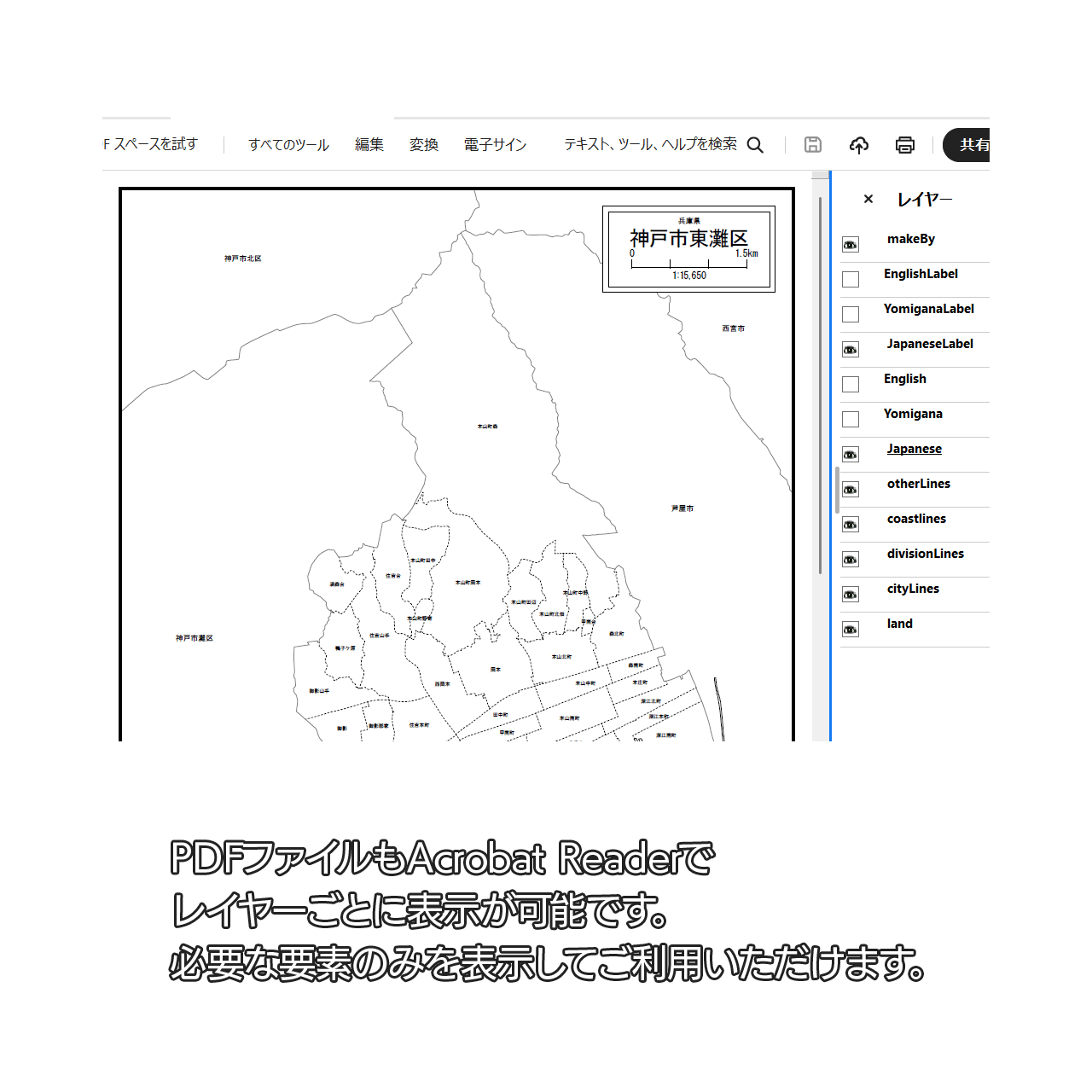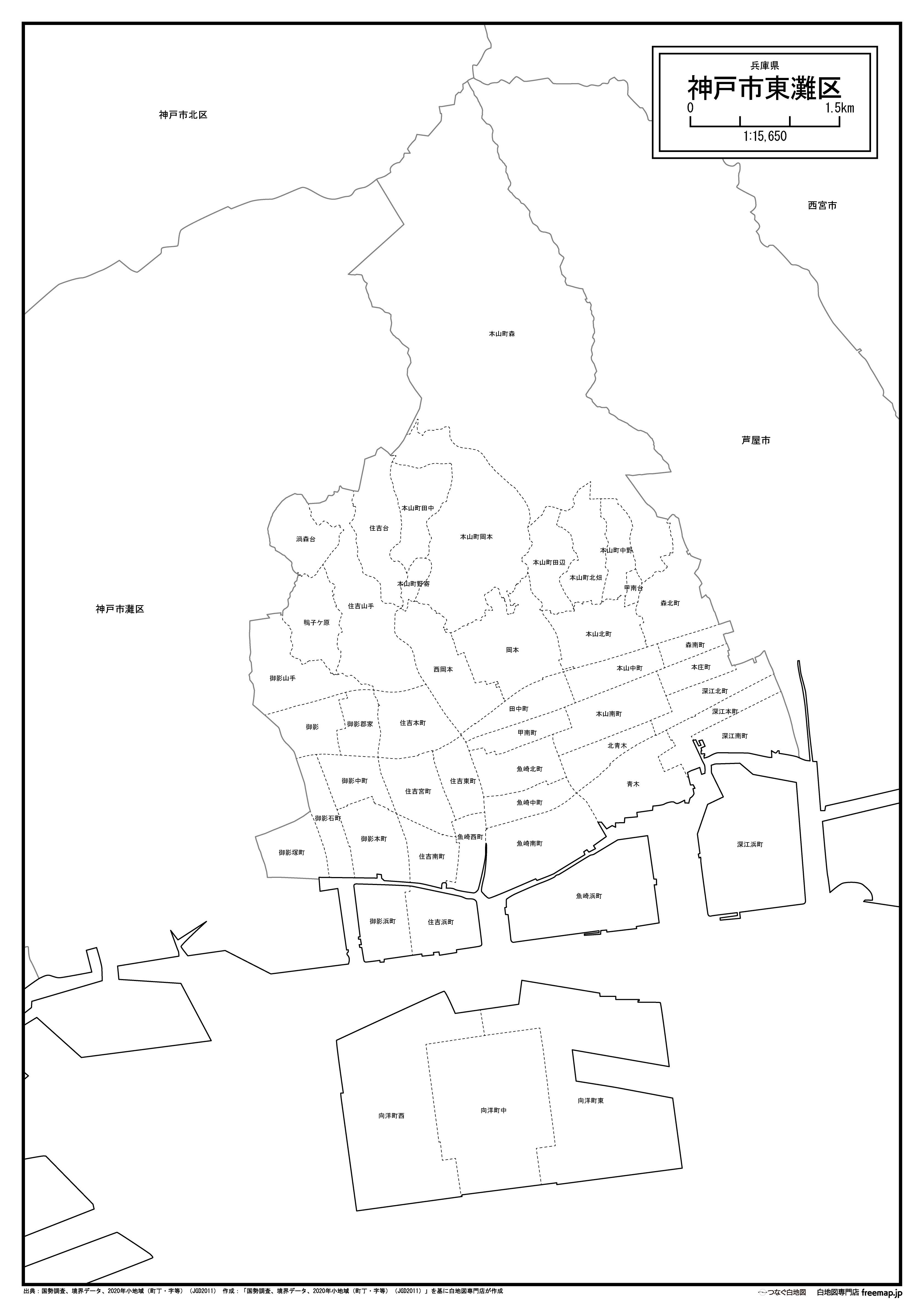 神戸市東灘区:大字・町名も記載の地図データ(PDF・Aiファイル)