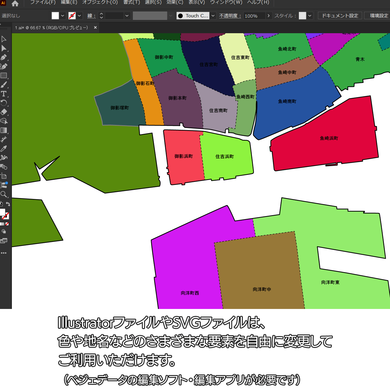 AiファイルはAdobe Illustratorで再編集可能な白地図データです。