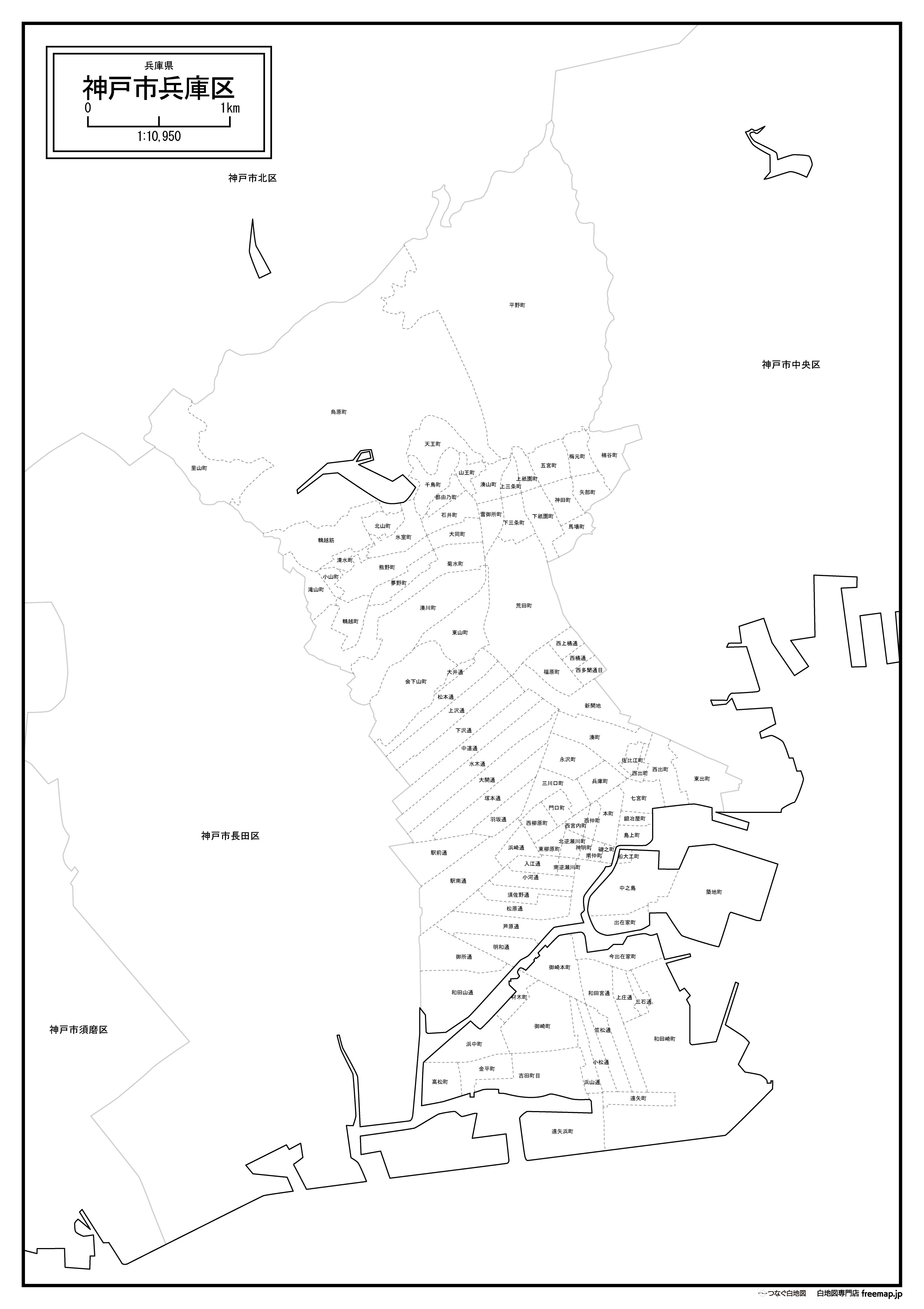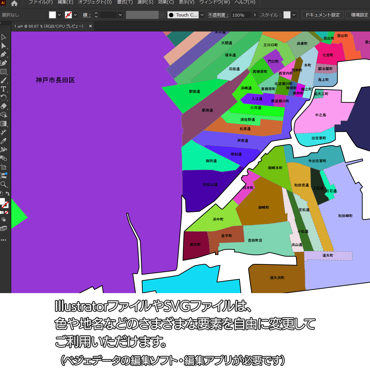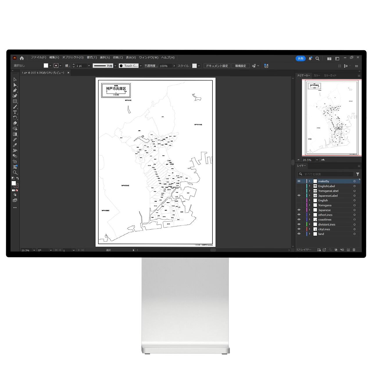 神戸市兵庫区:大字・町名も記載の地図データ(PDF・Aiファイル)