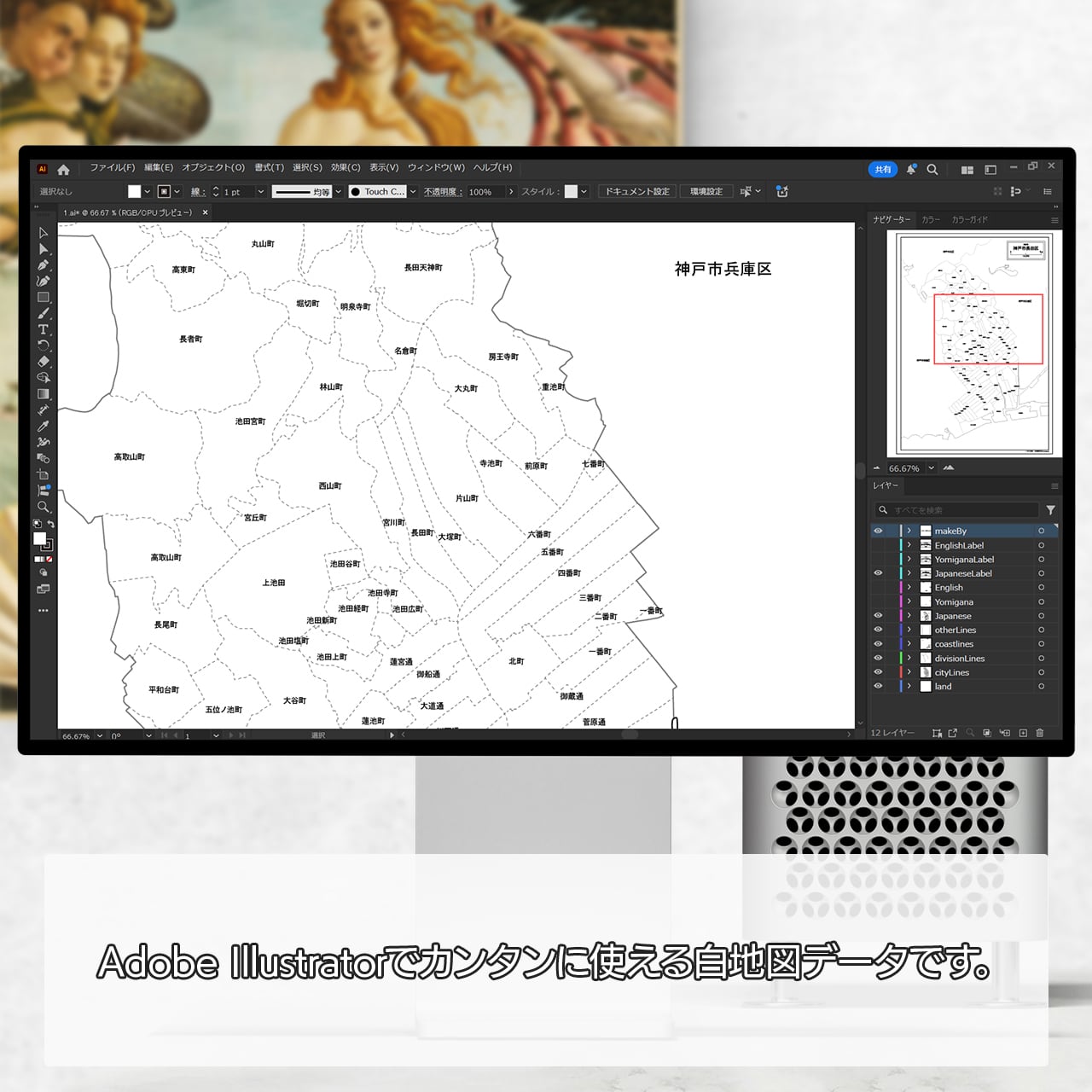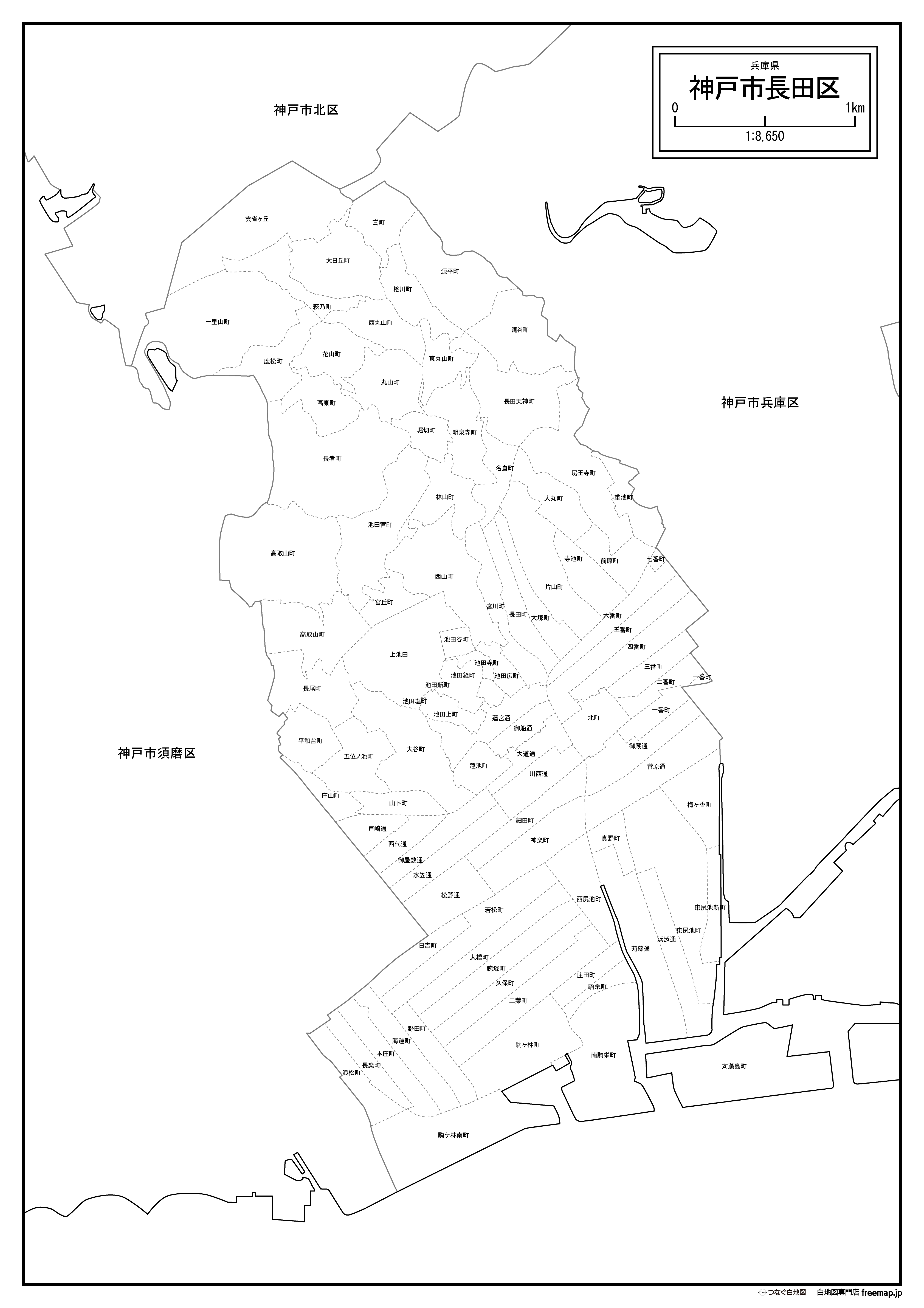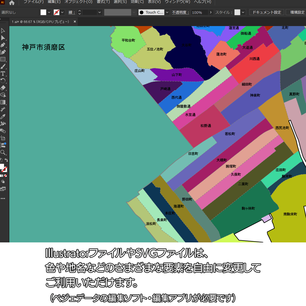 神戸市長田区:大字・町名も記載の地図データ(PDF・Aiファイル)