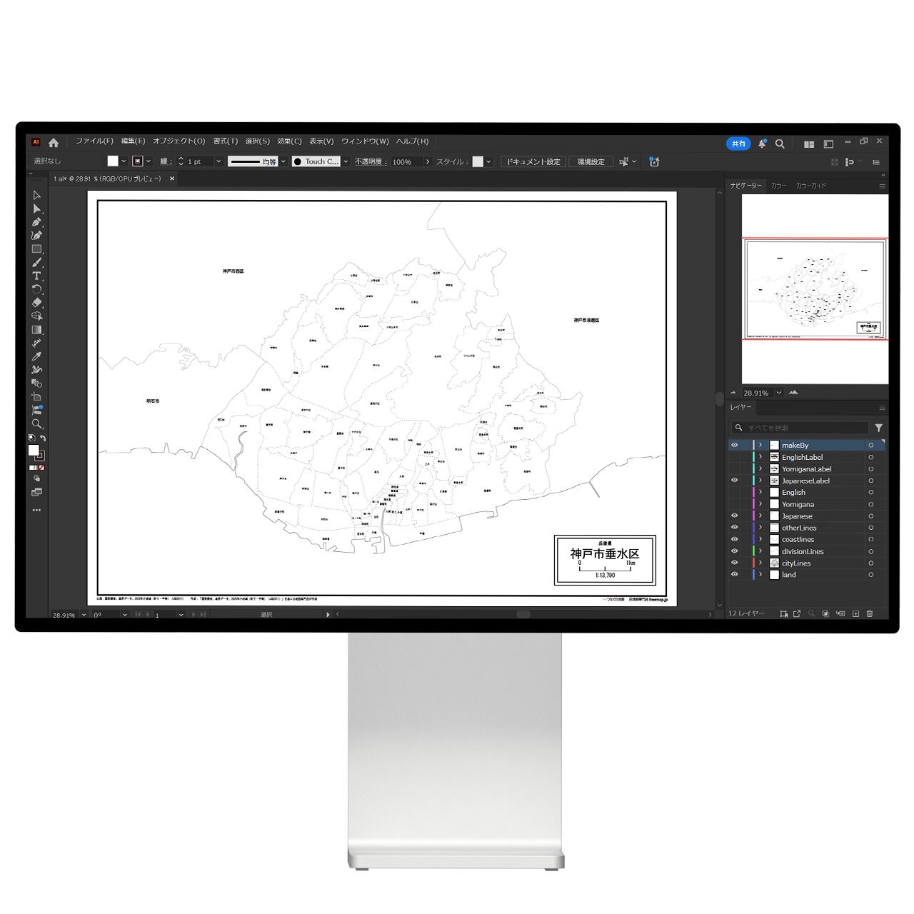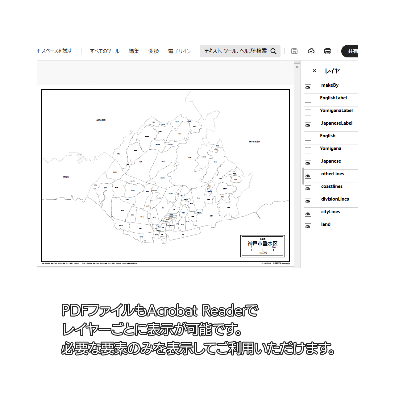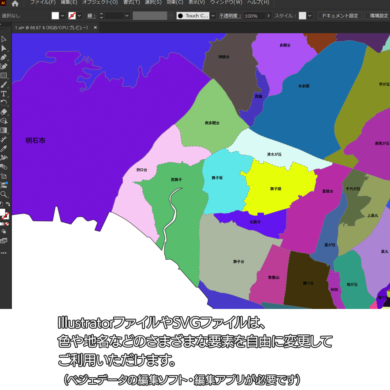 神戸市垂水区:大字・町名も記載の地図データ(PDF・Aiファイル)
