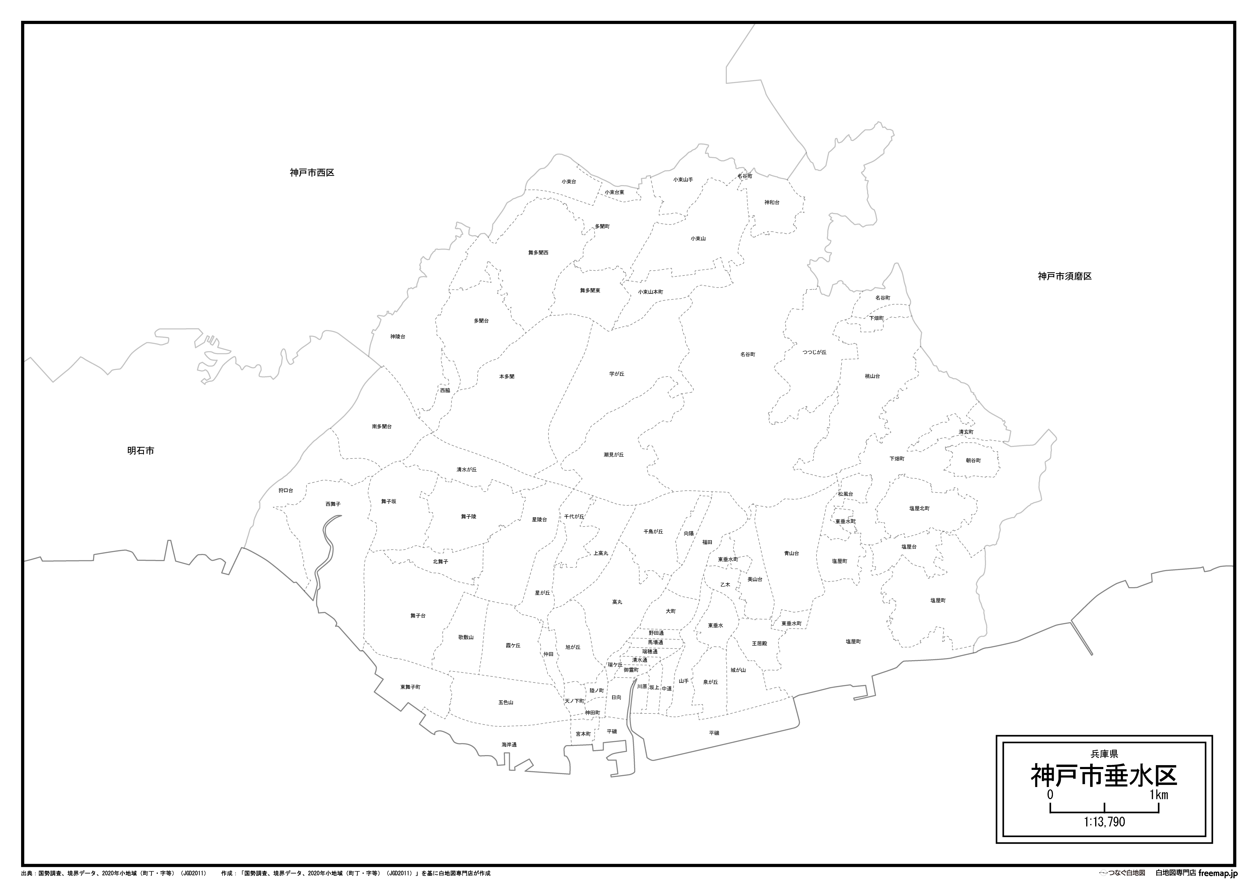 神戸市垂水区の大字・町名も記載した地図データです。