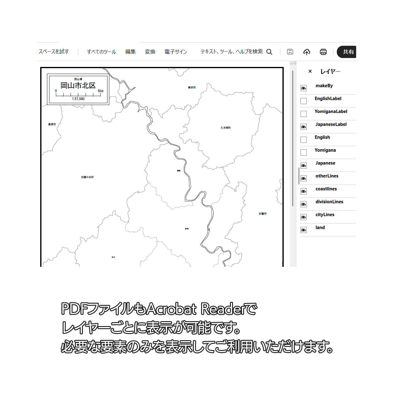 岡山市北区:町名も記載の地図データ(PDF・Aiファイル)