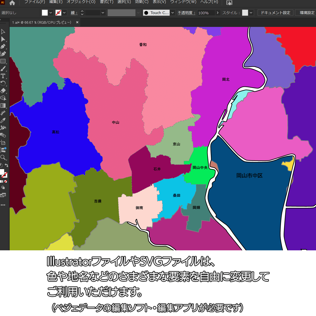 AiファイルはAdobe Illustratorで再編集可能な白地図データです。