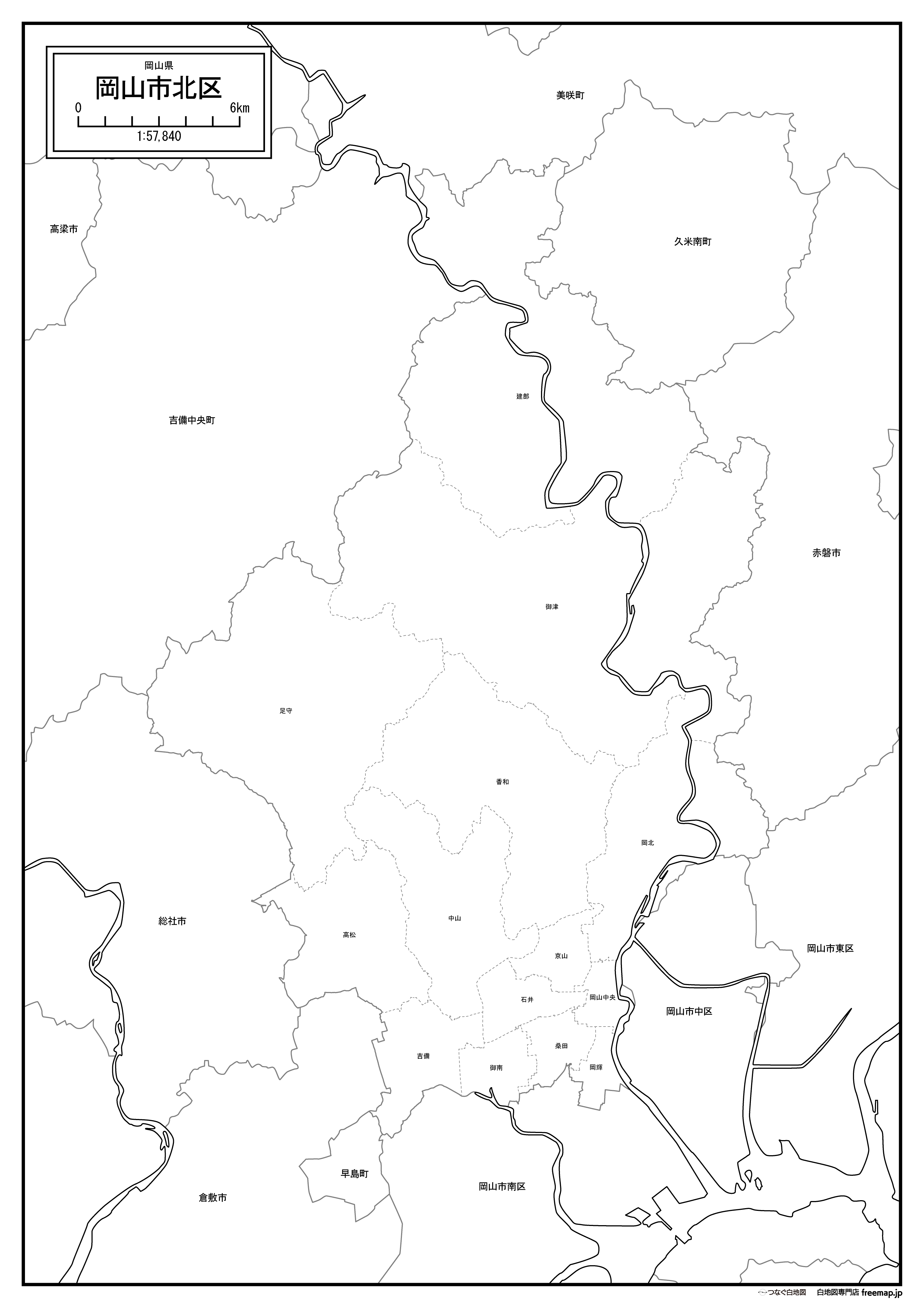 岡山市北区の町名まで記載した地図データです。