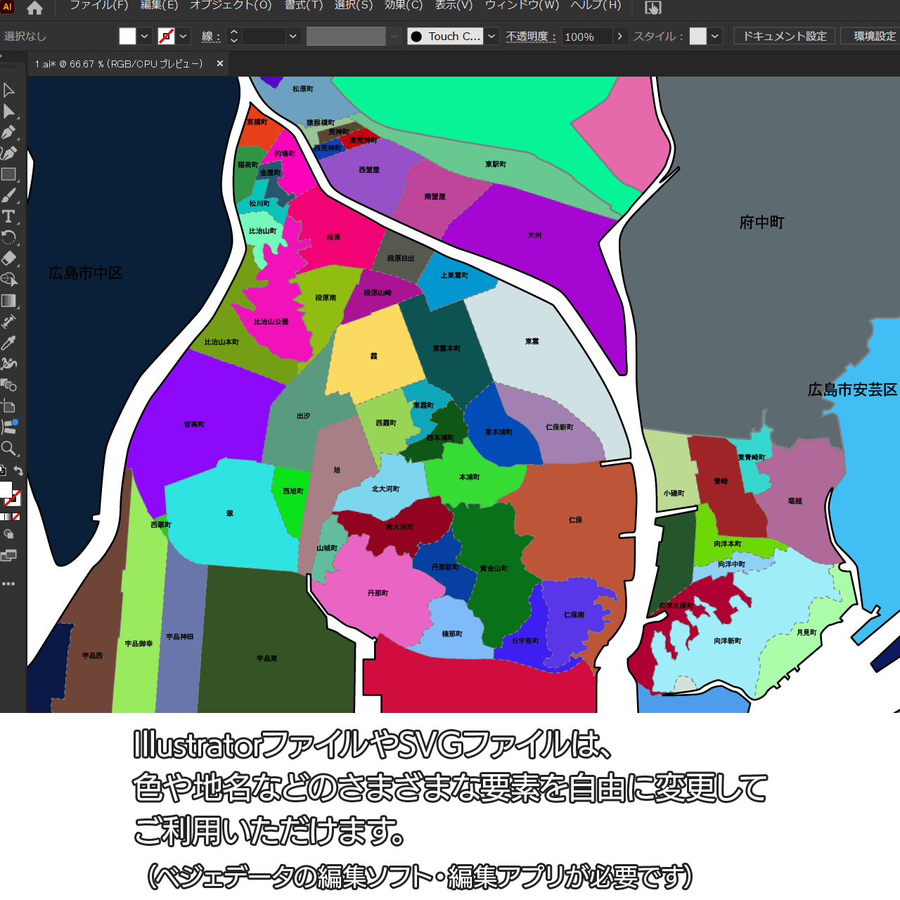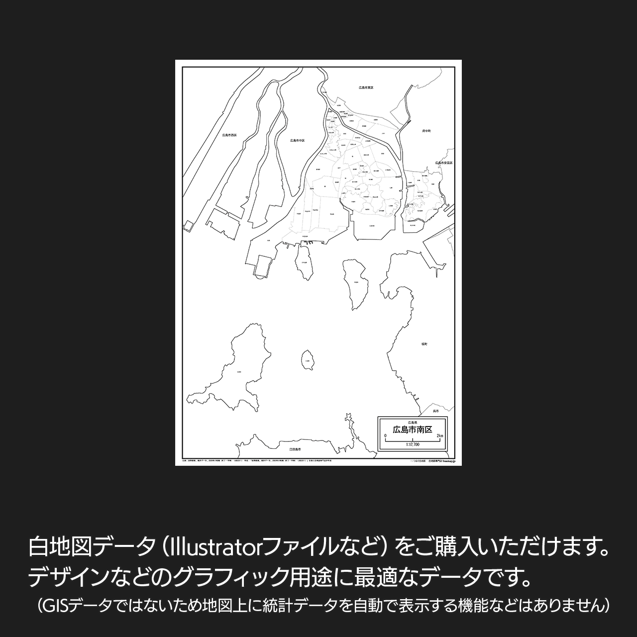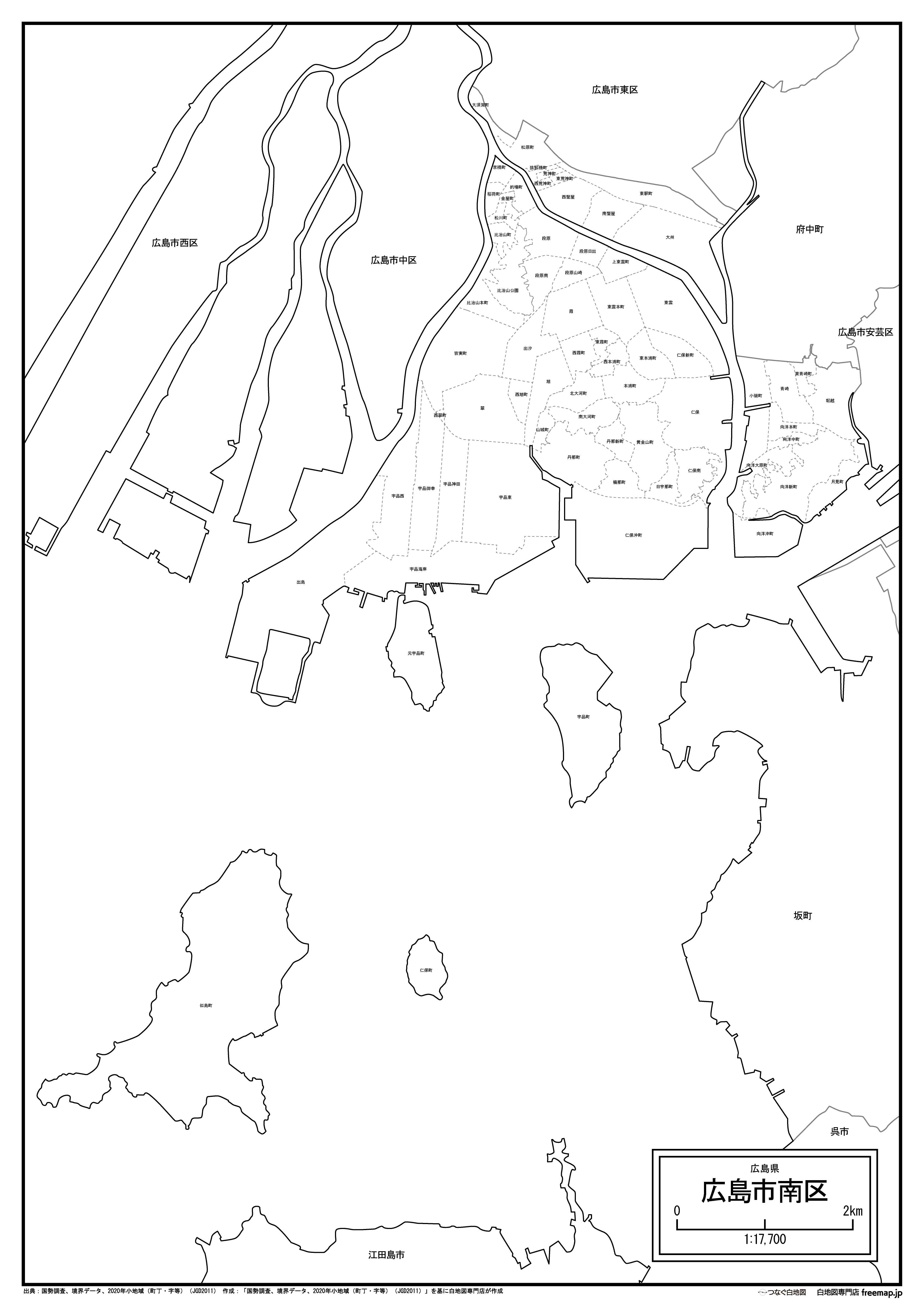 広島市南区の白地図データです。Illustratorで自由に再編集可能です。