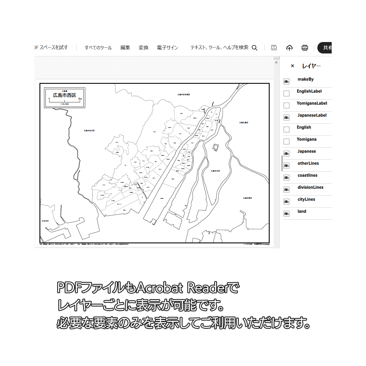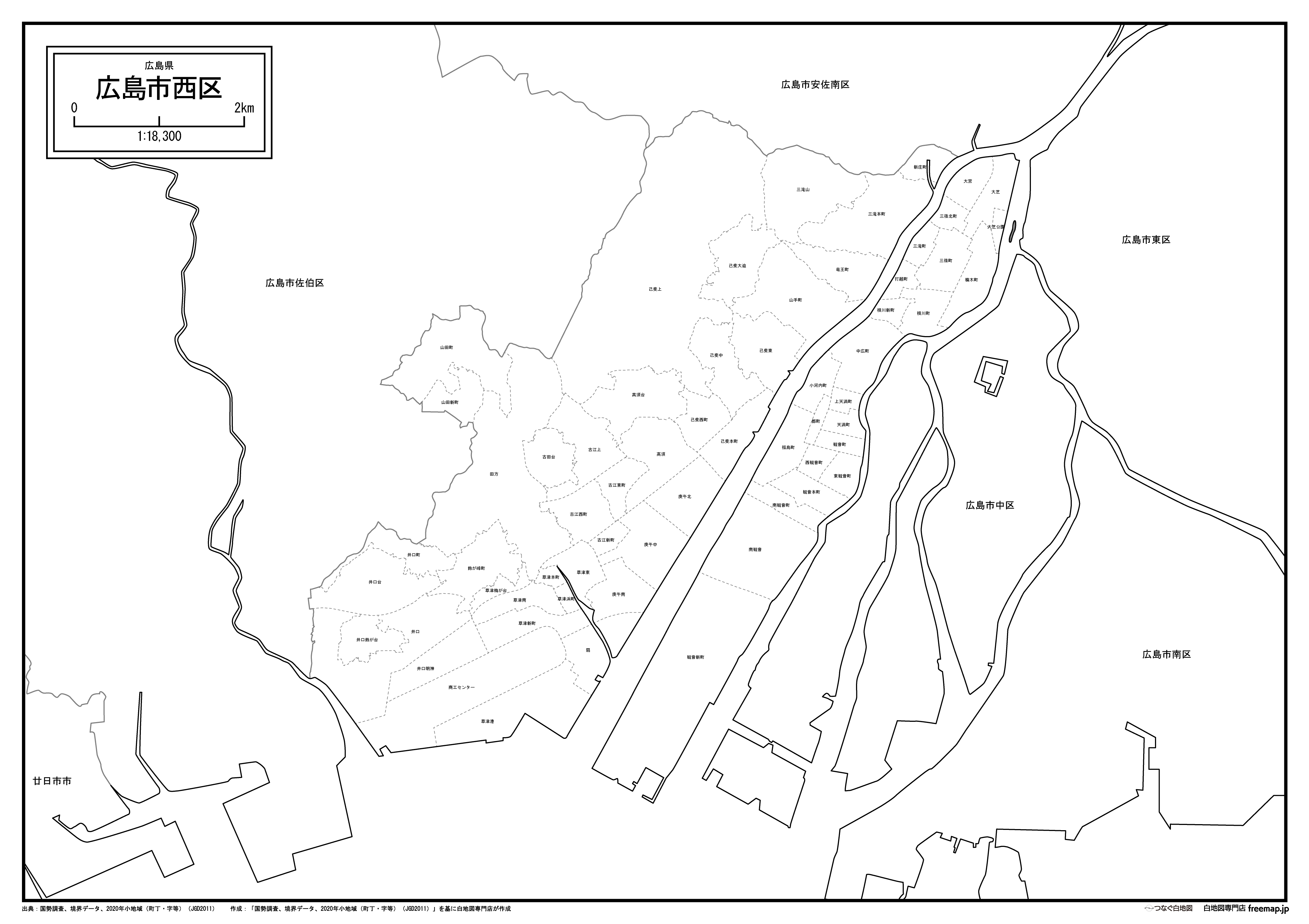 広島市西区の白地図データです。Illustratorで自由に再編集可能です。