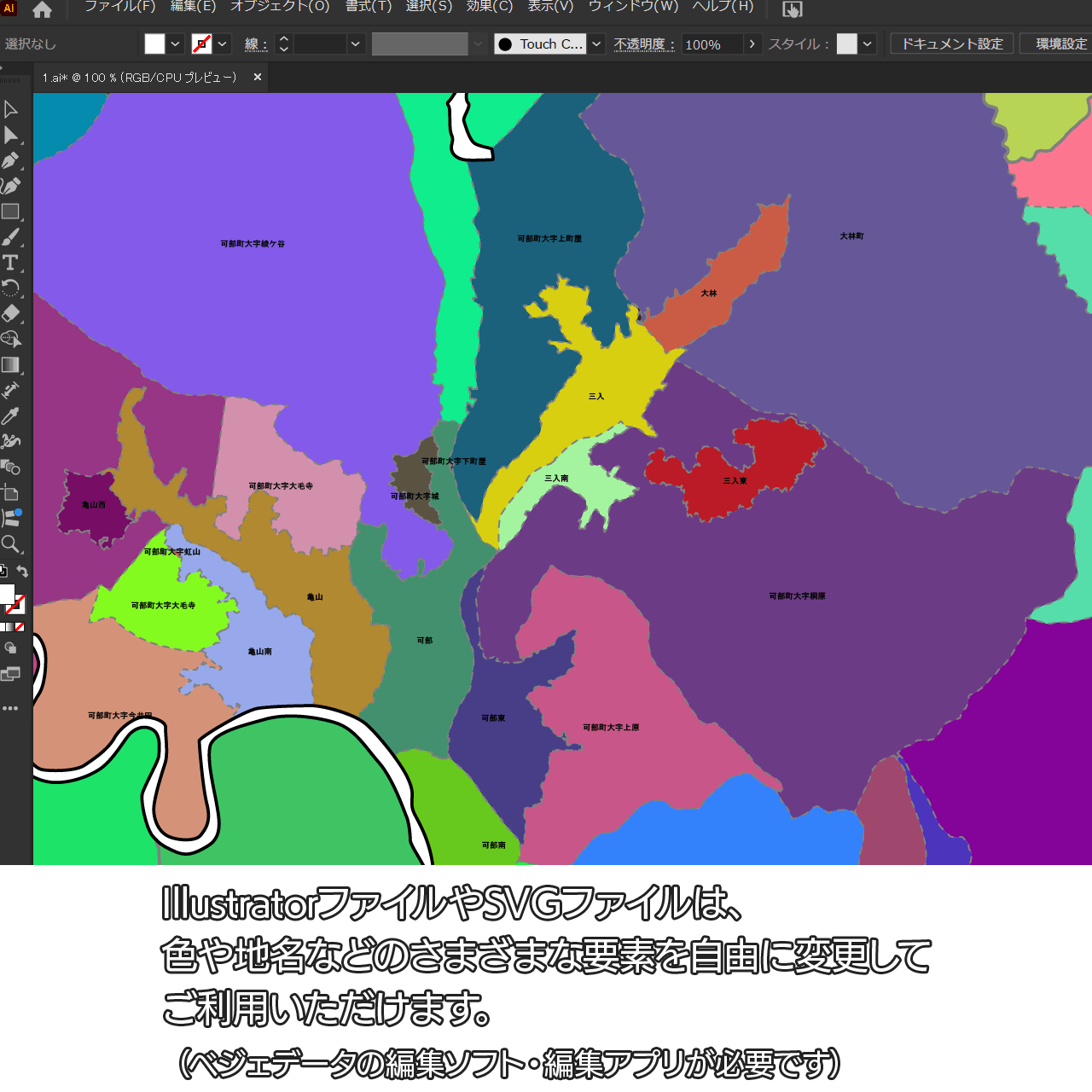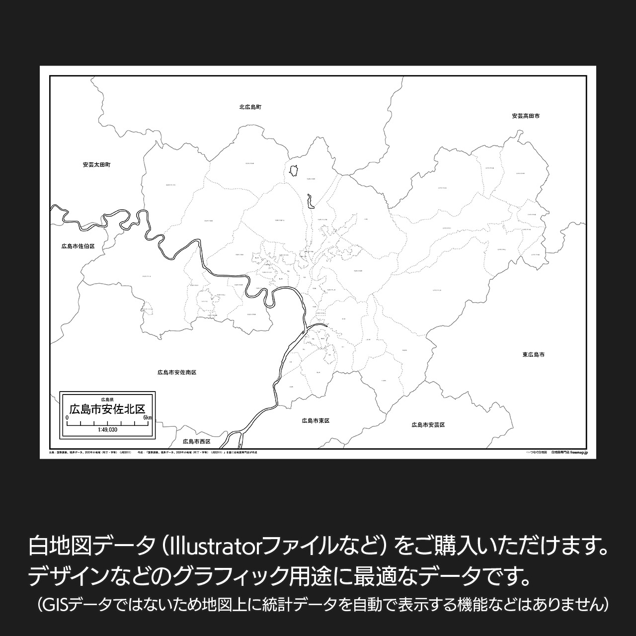 広島市安佐北区の白地図データです。Illustratorで自由に再編集可能です。