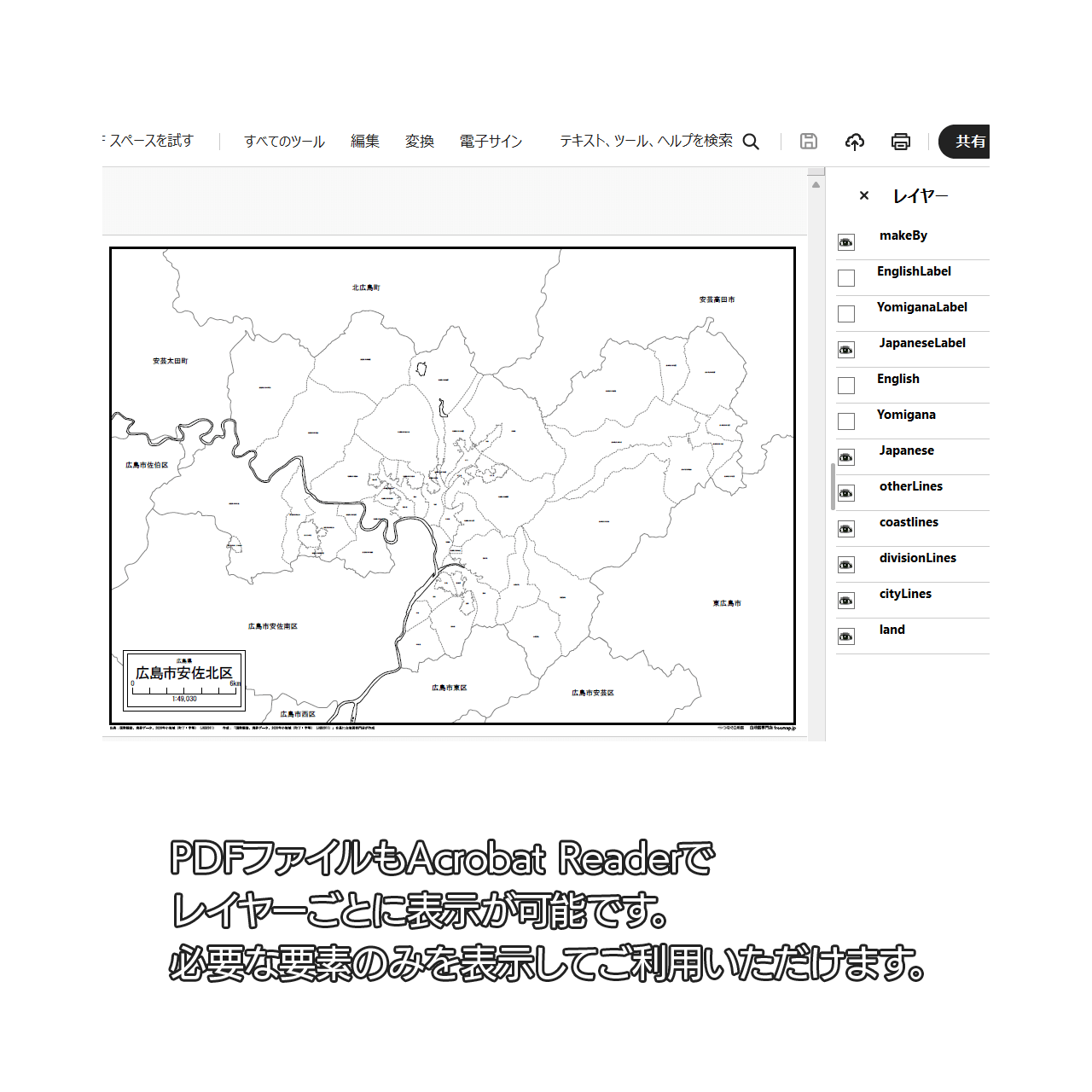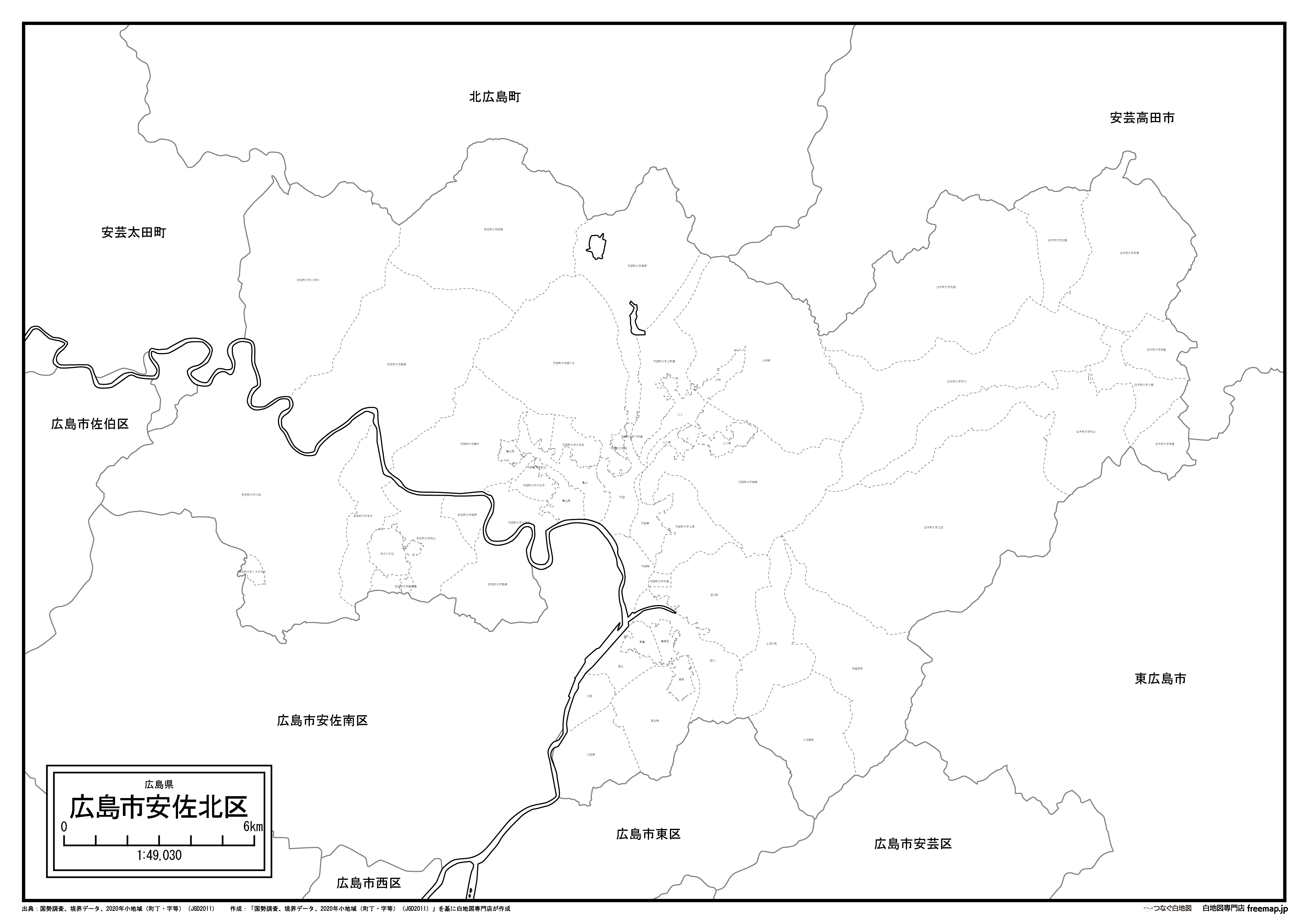 広島市安佐北区の白地図(Aiファイル)