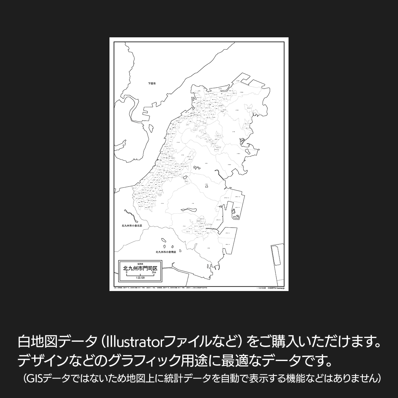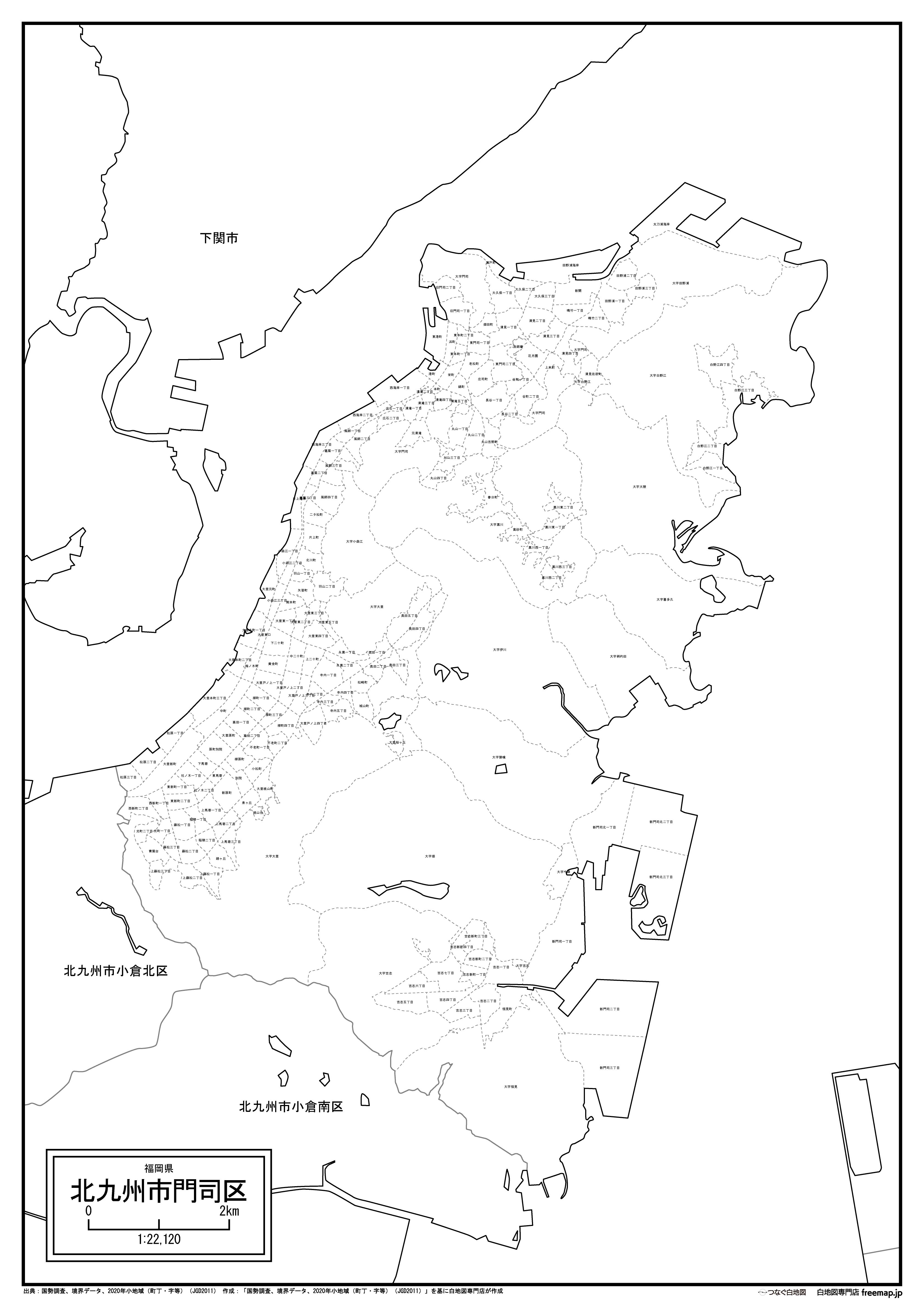 北九州市門司区の白地図データです。Illustratorで自由に再編集可能です。