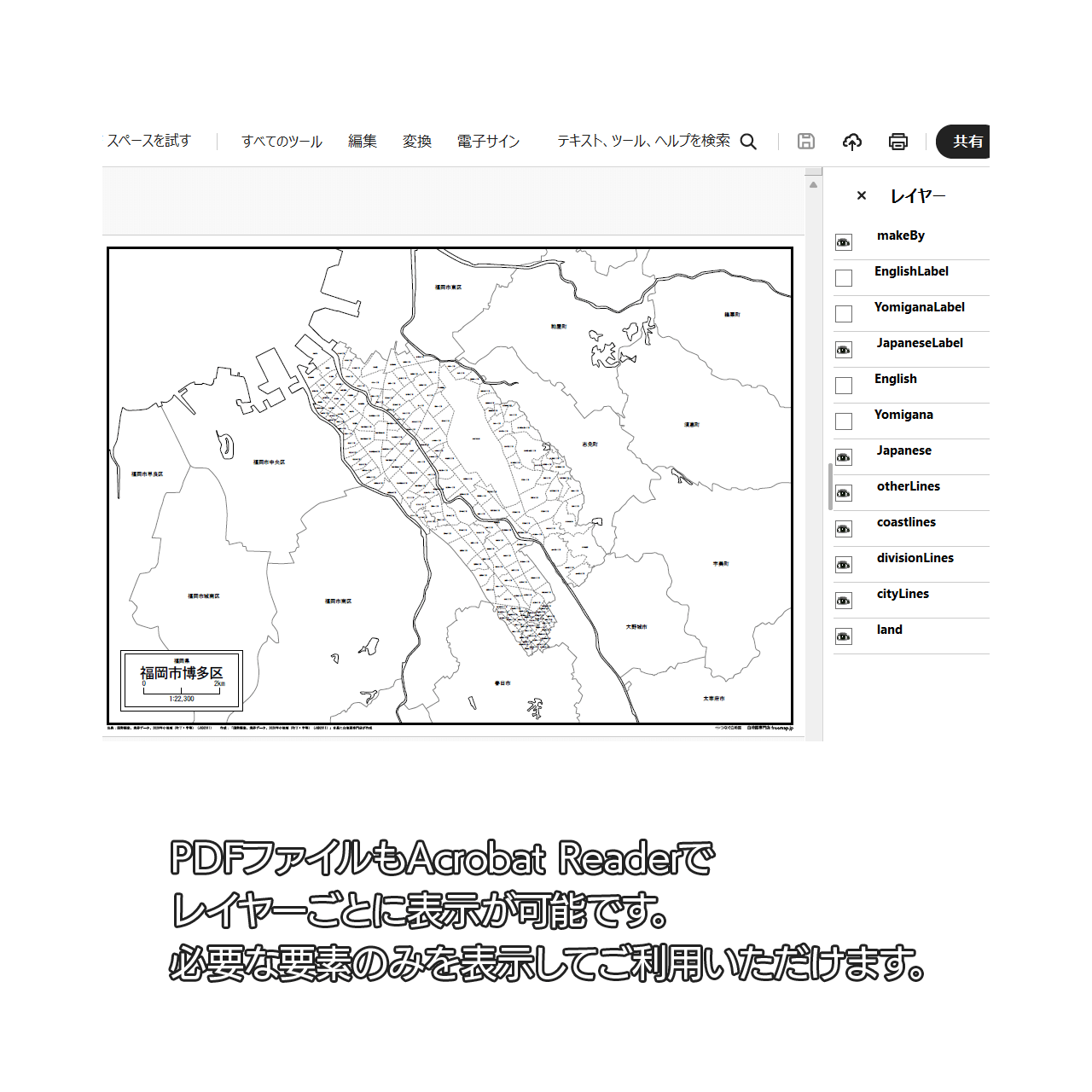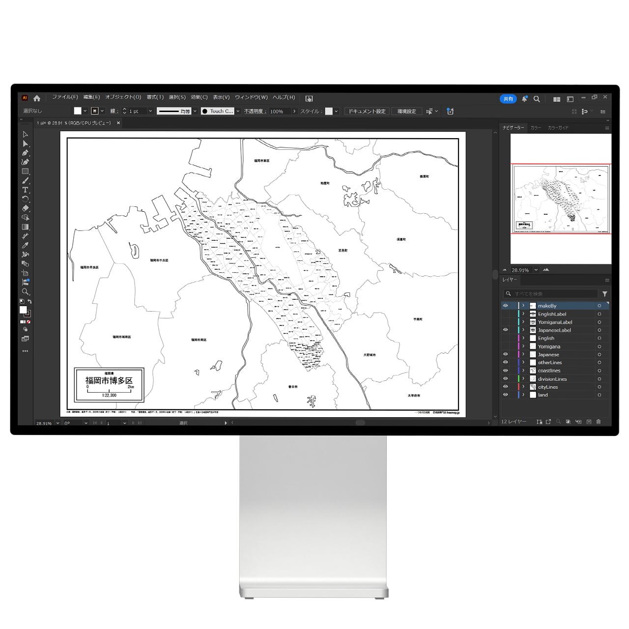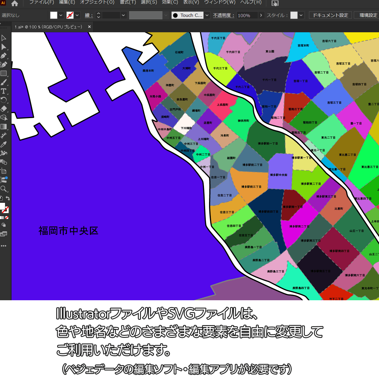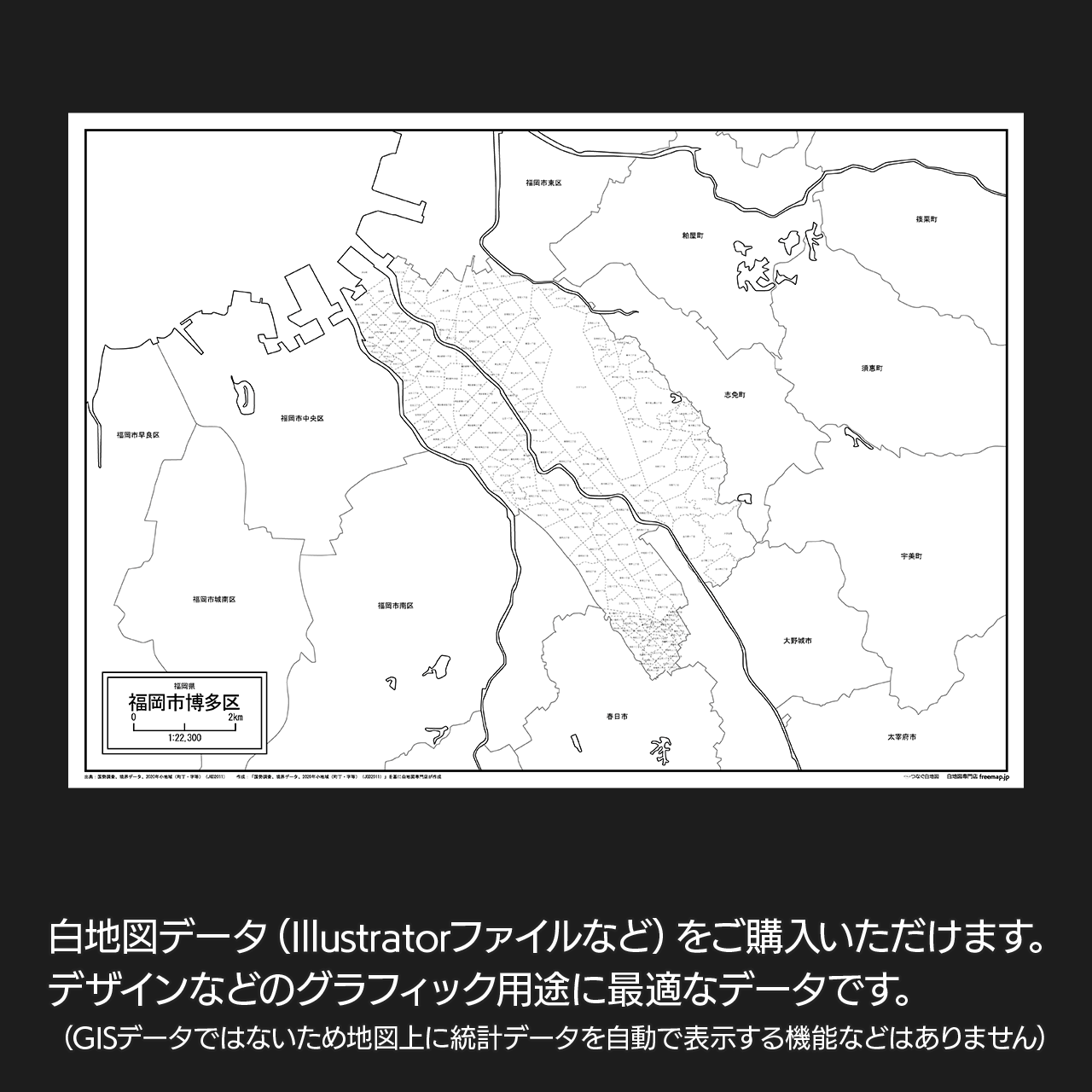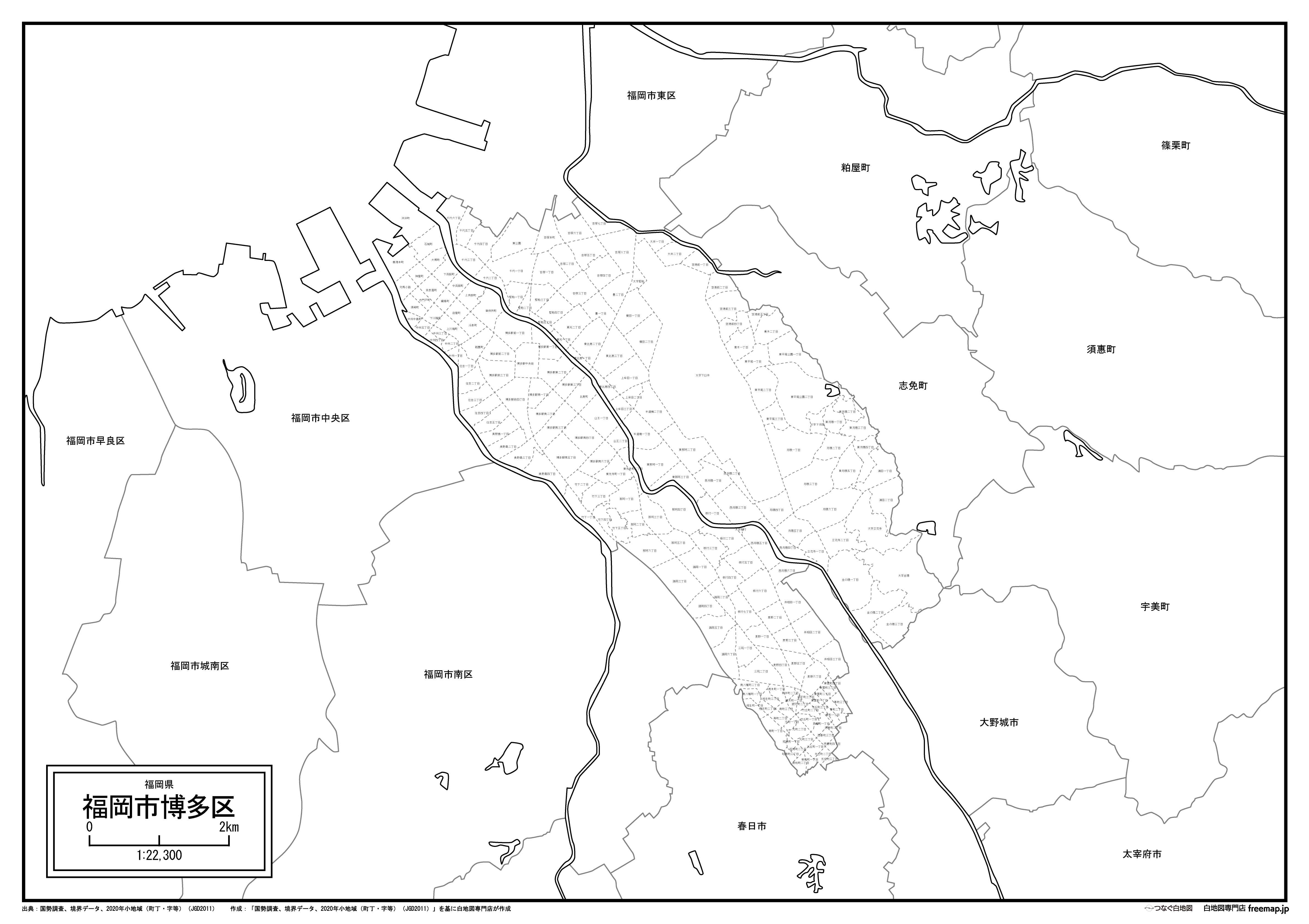 福岡市博多区の白地図データです。Illustratorで自由に再編集可能です。