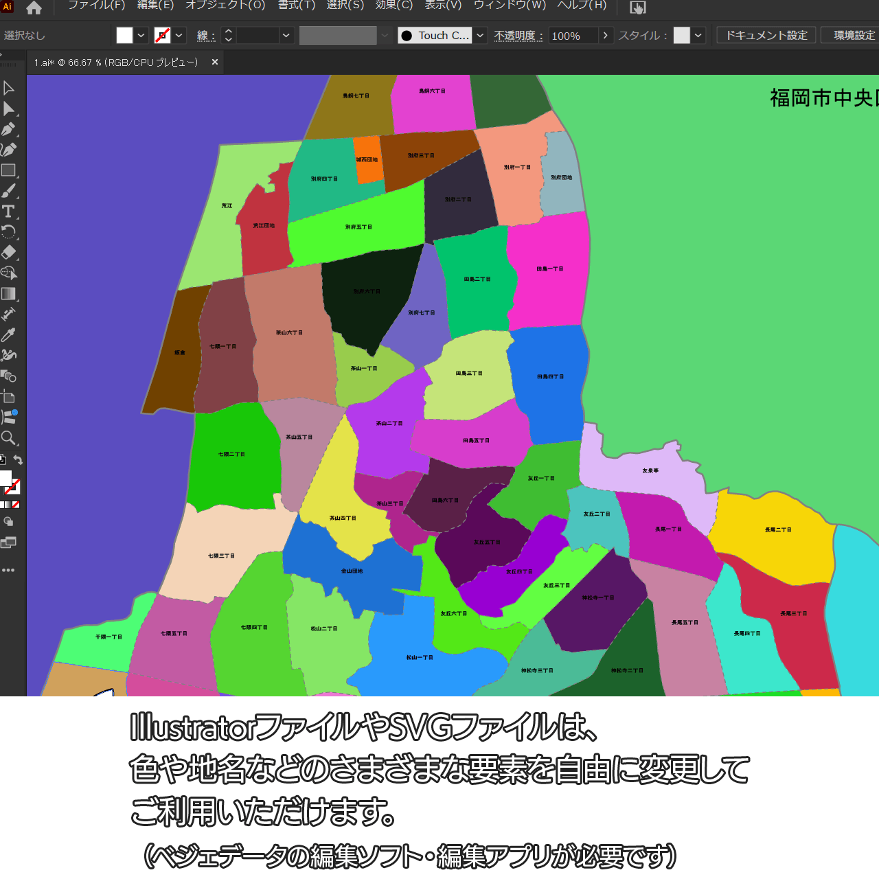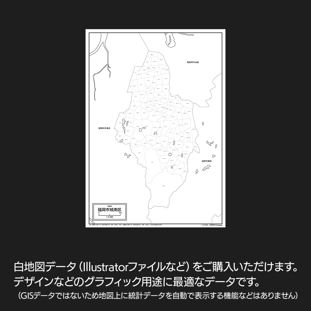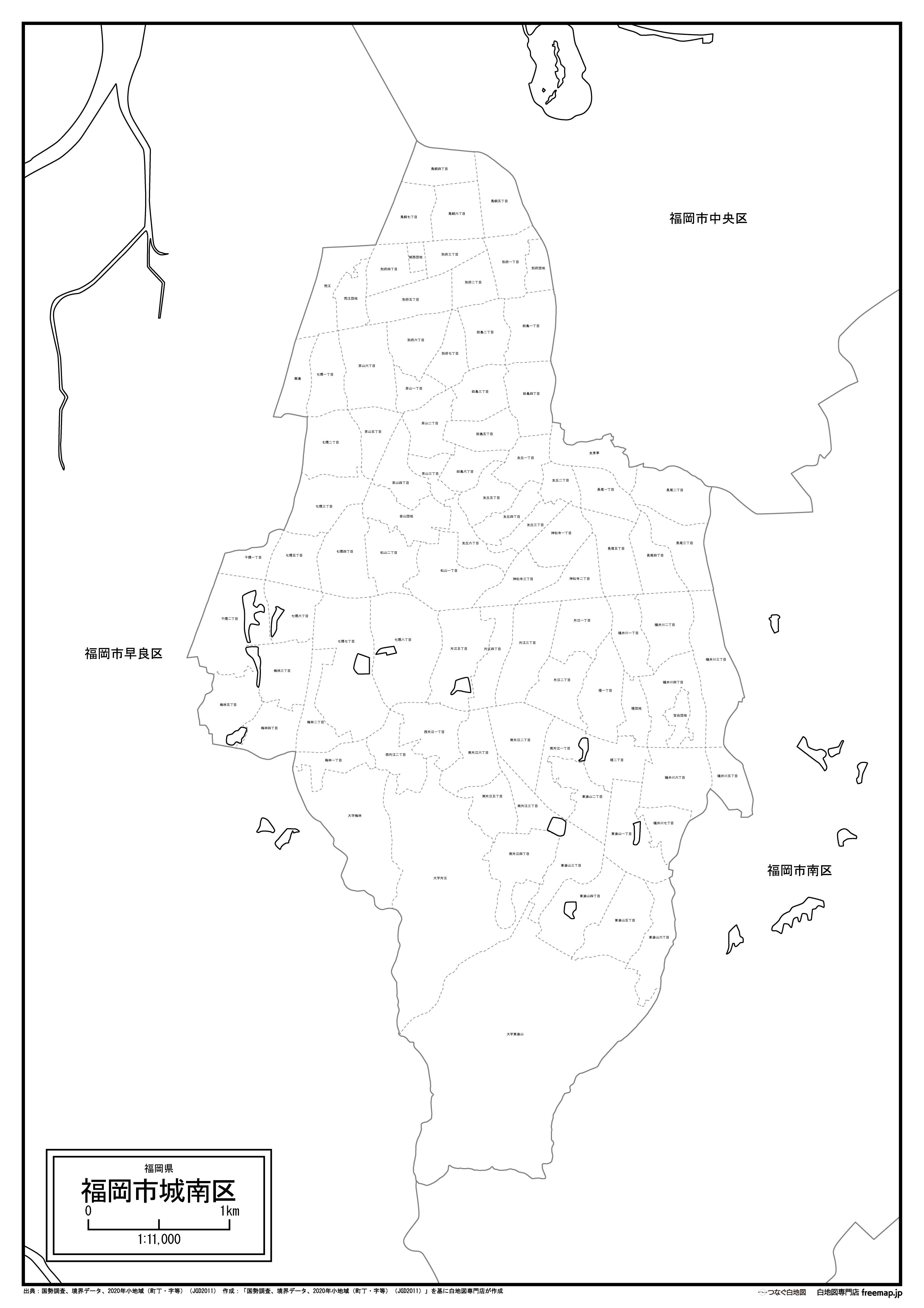 福岡市城南区の白地図データです。Illustratorで自由に再編集可能です。