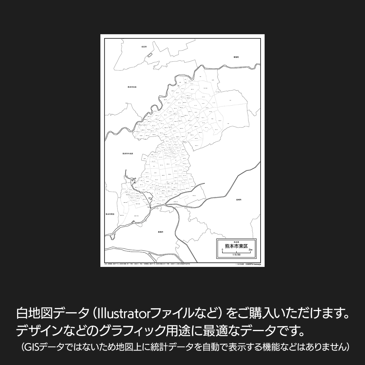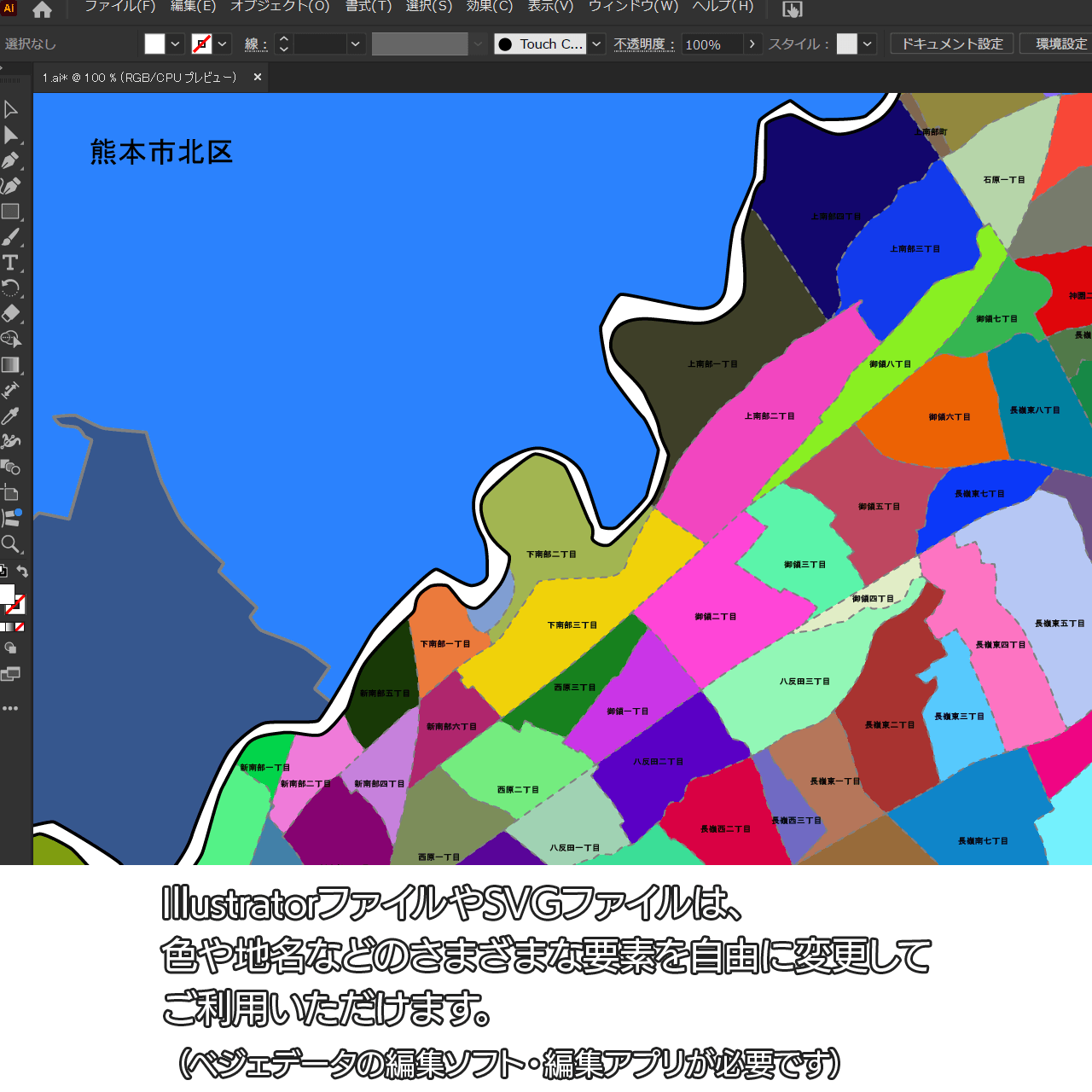 熊本市東区の白地図データです。Illustratorで自由に再編集可能です。