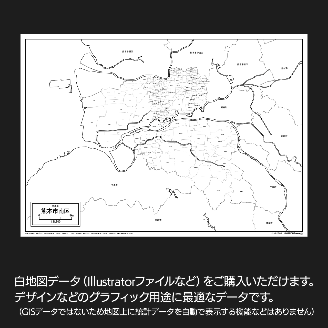 熊本市南区の白地図データです。Illustratorで自由に再編集可能です。