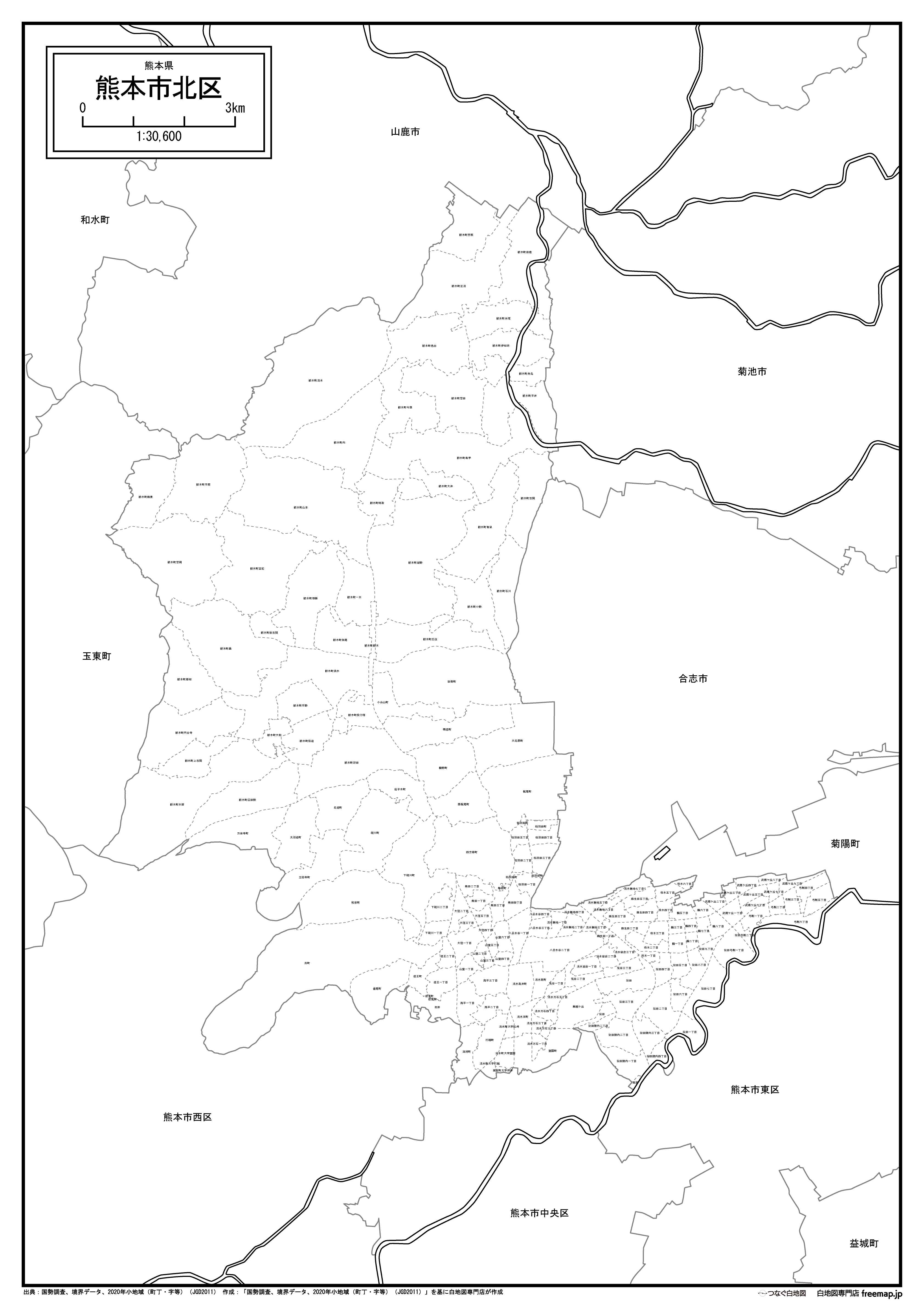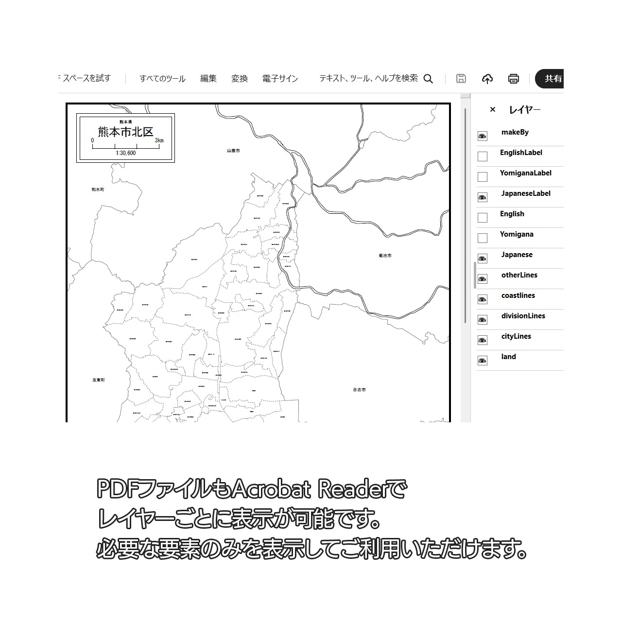 熊本市北区の白地図データです。Illustratorで自由に再編集可能です。