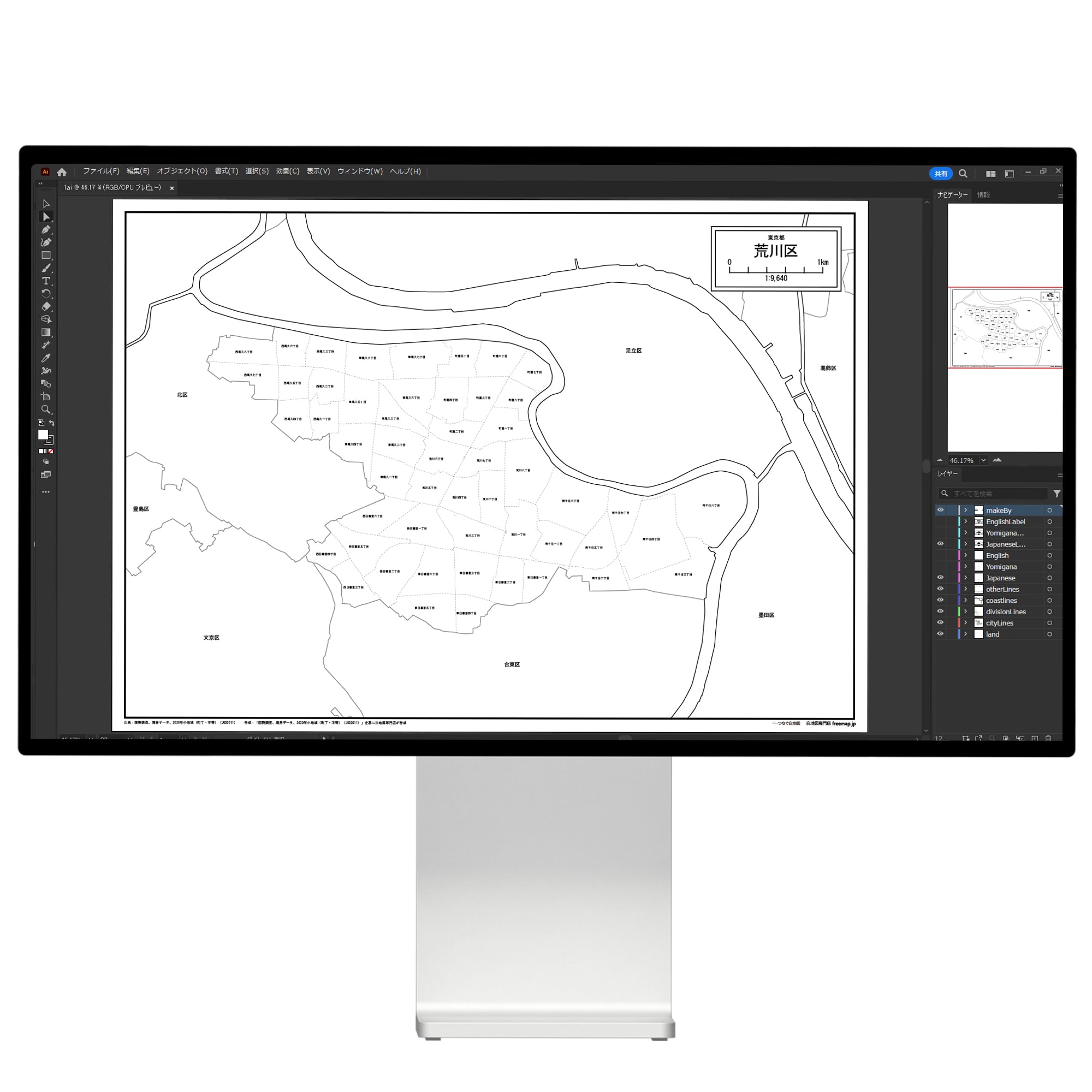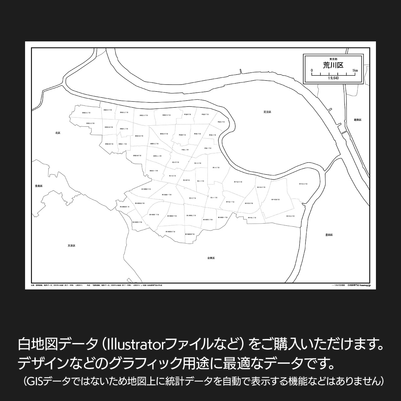 東京都荒川区:丁目も記載の地図データ(PDF・Aiファイル)
