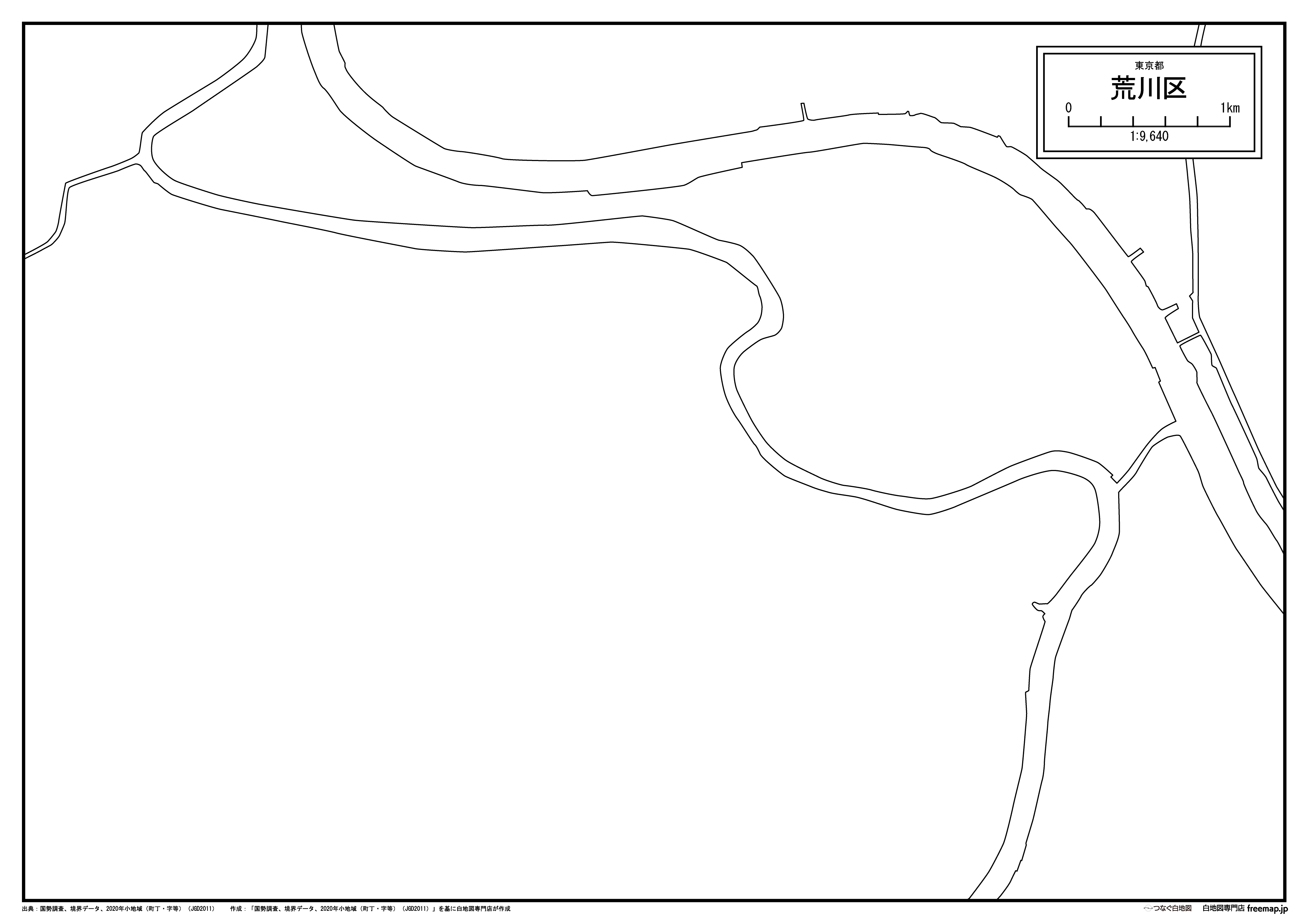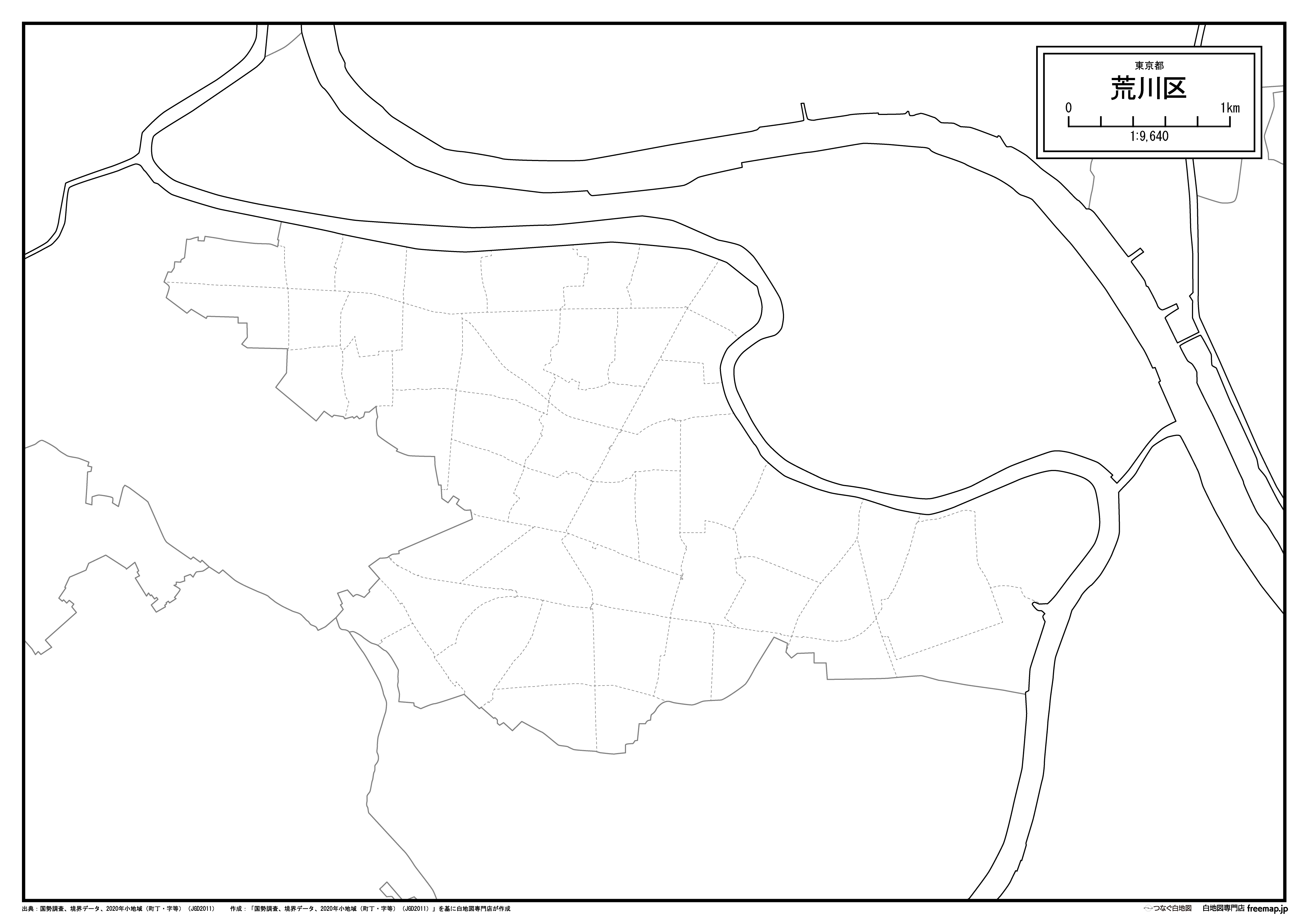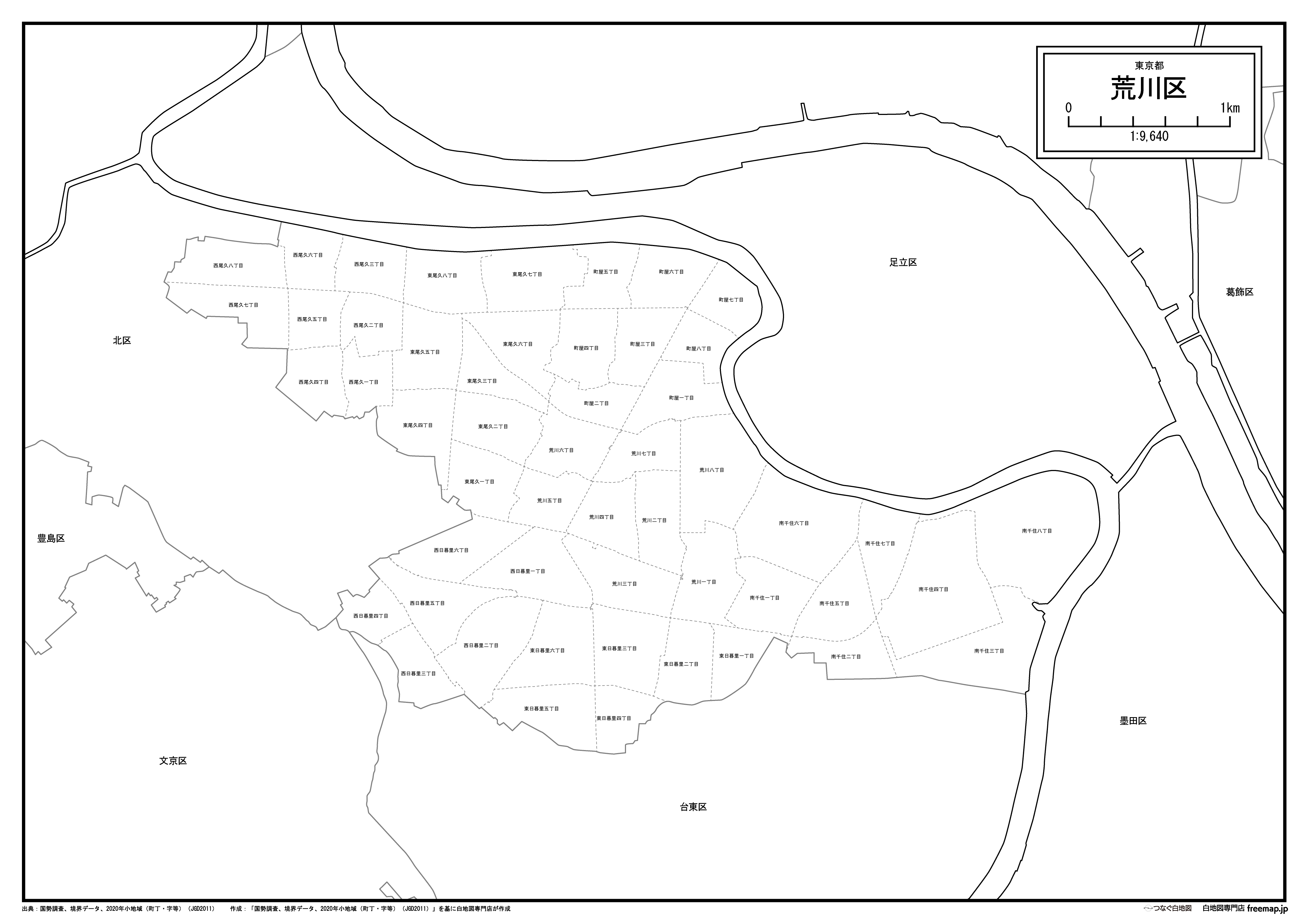 東京都荒川区の町名(町丁目)も記載した地図データです。