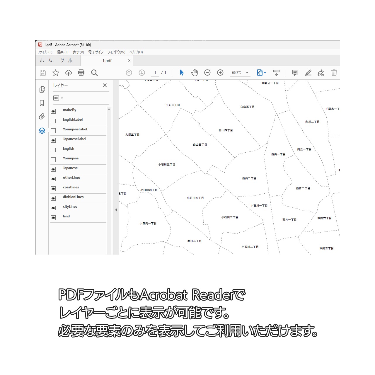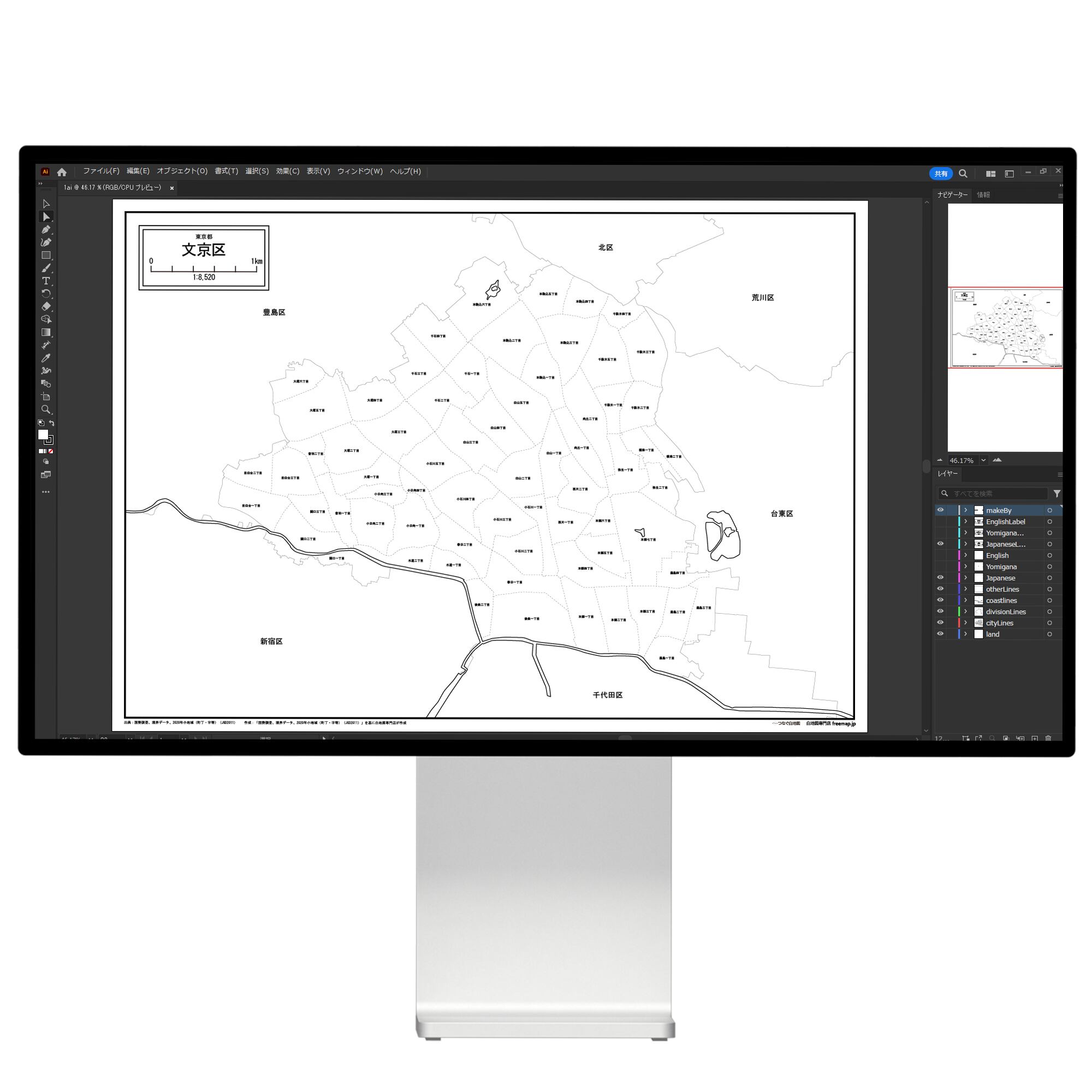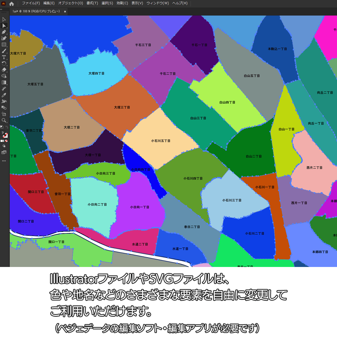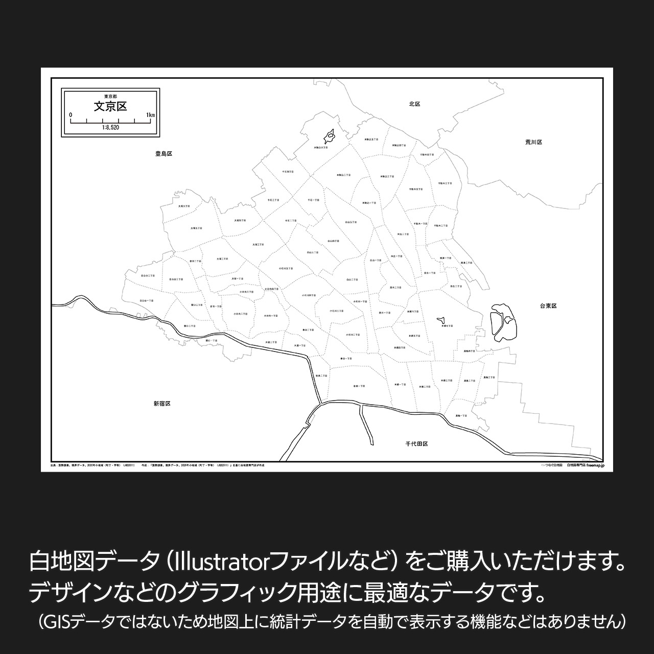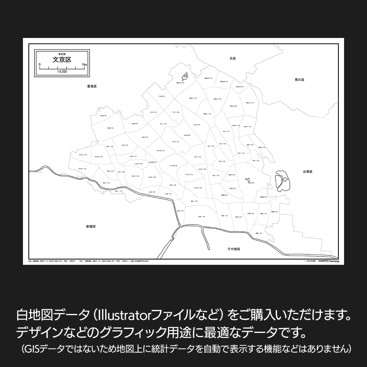 東京都文京区:丁目も記載の地図データ(PDF・Aiファイル)